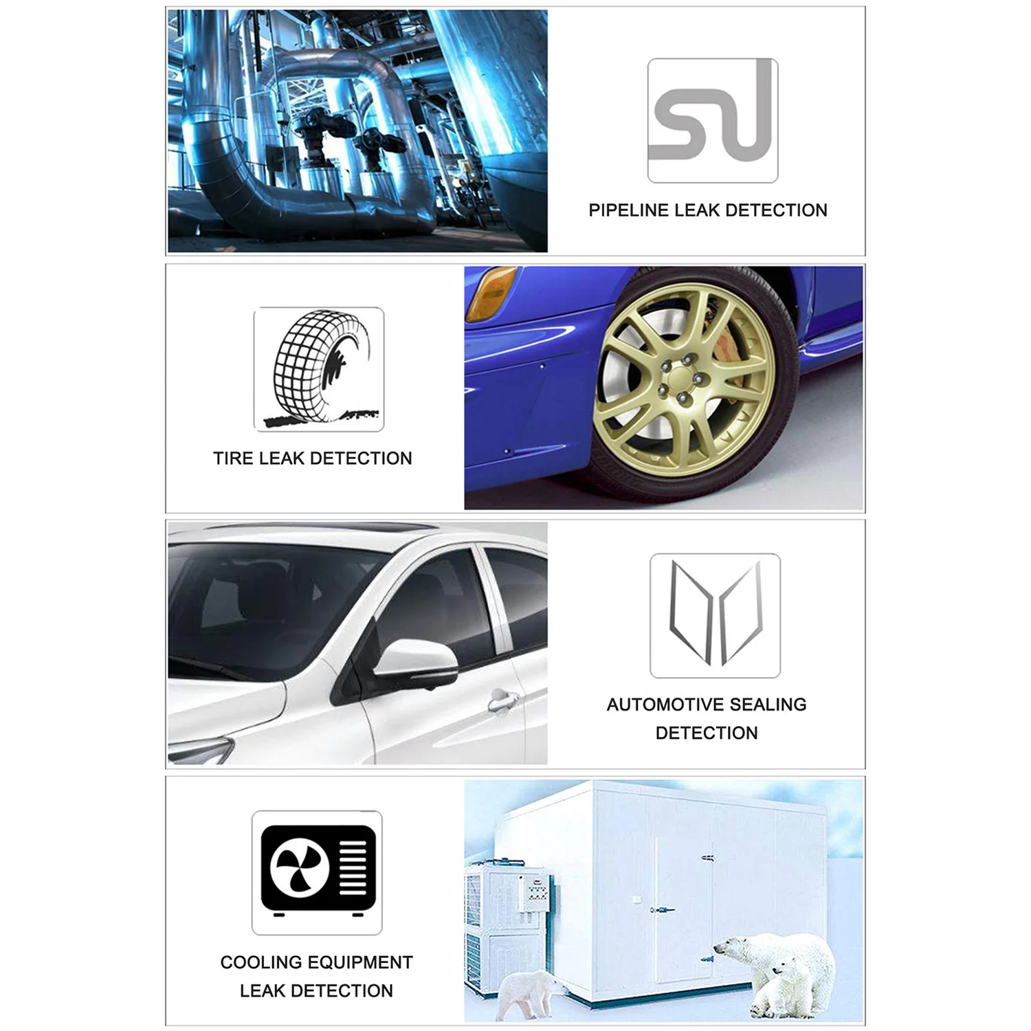 Этот инструмент очень подходит для проверки герметичности салона, самолета, транспортного средства шкафа, холодильника, замерзающего завода, масляного бака, домов, дверей и окон автомобилей, различных труб, контейнерных песка других герметичных отсеков и т. Д.