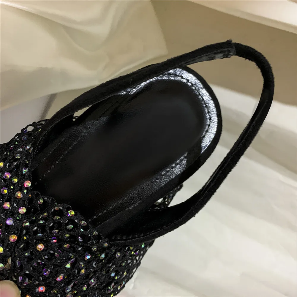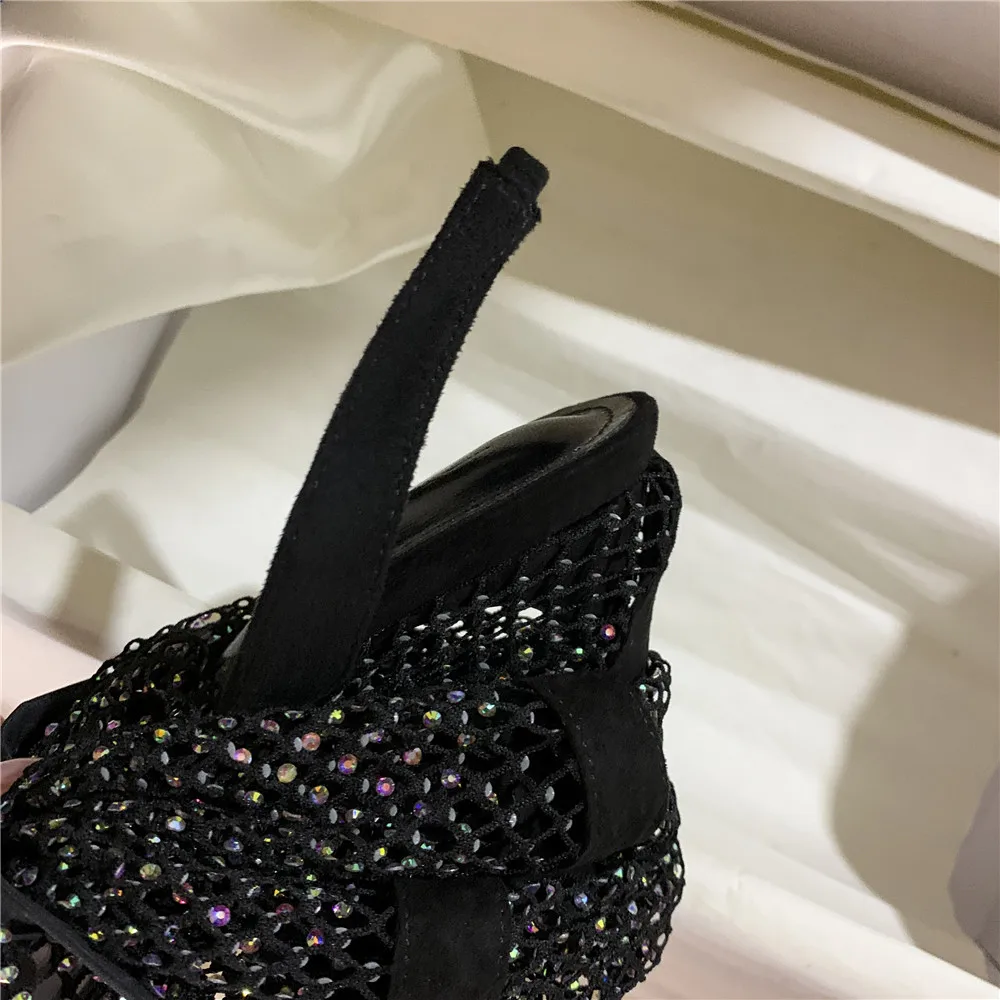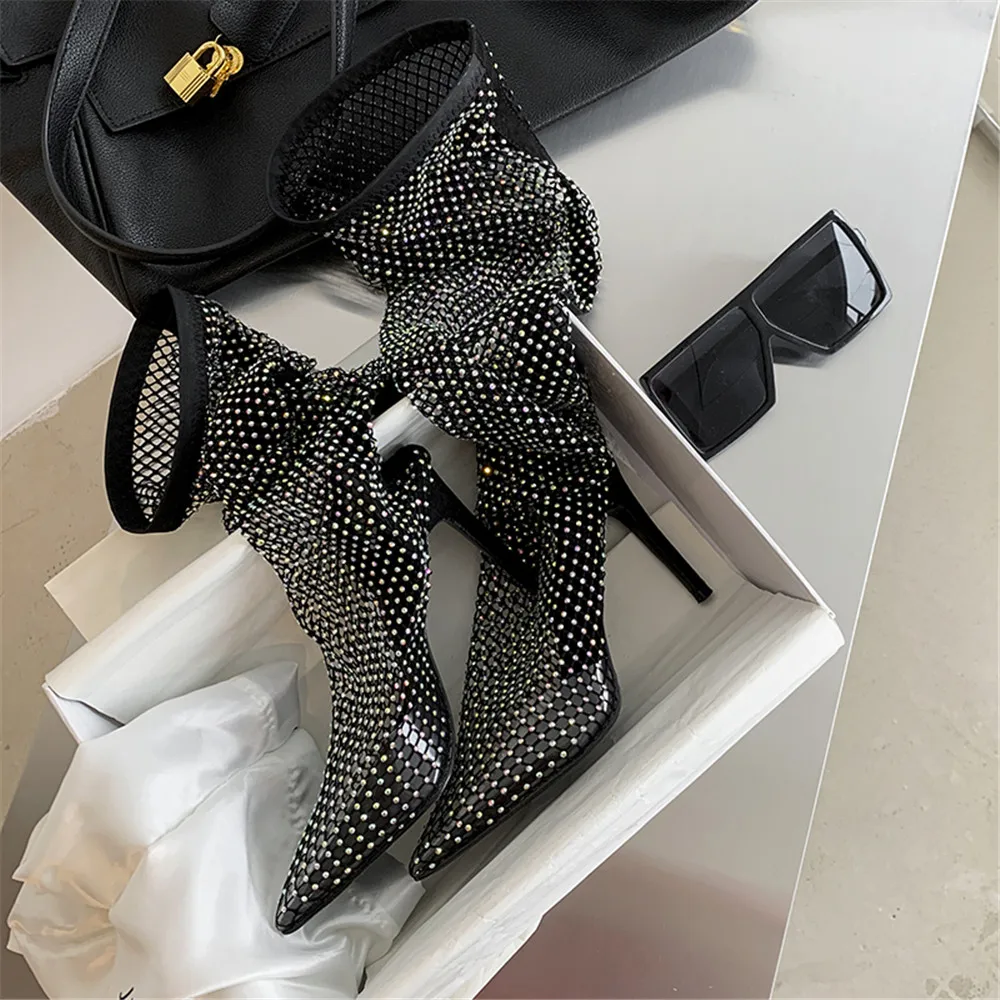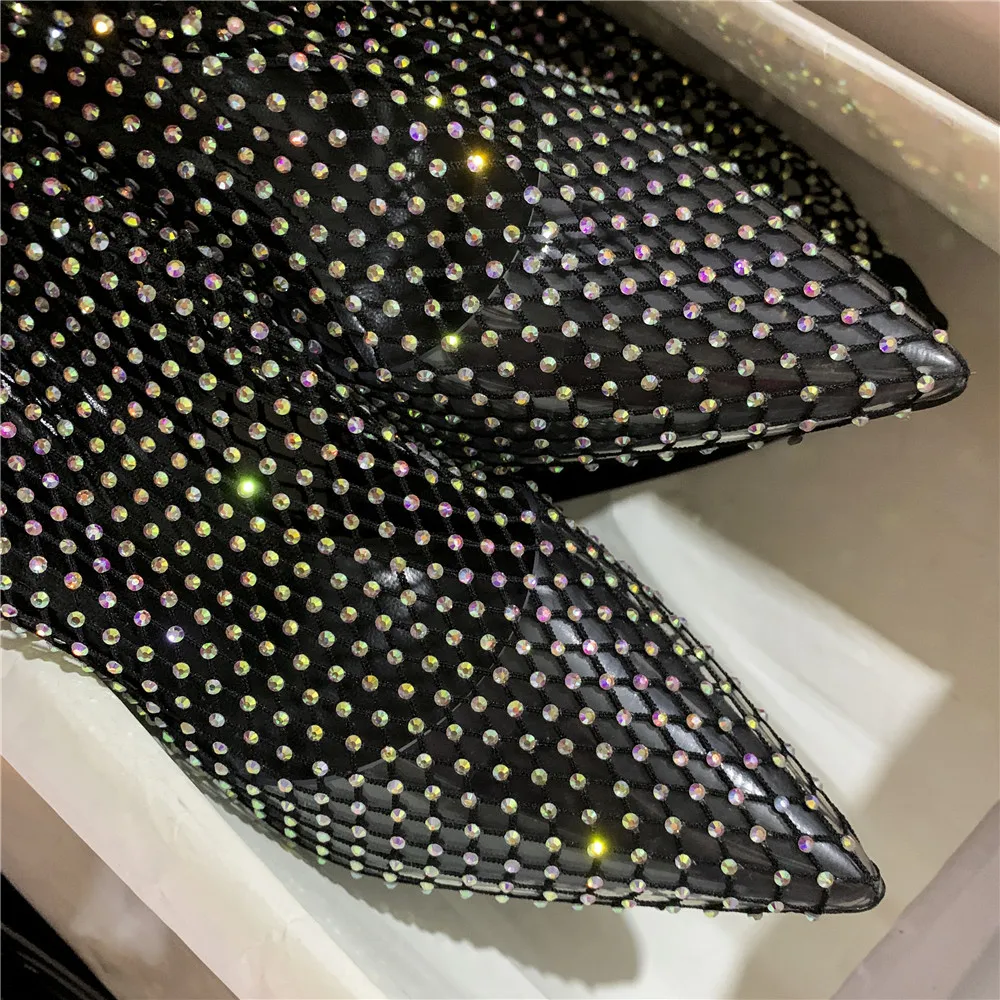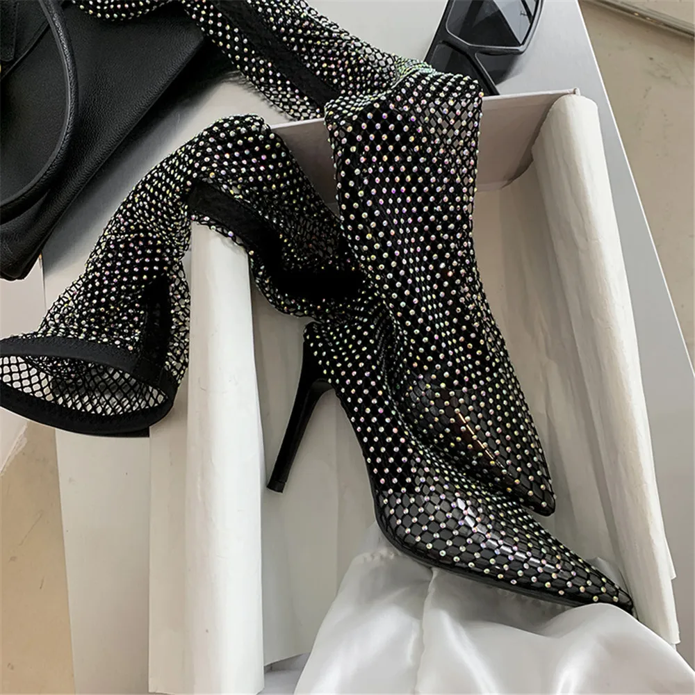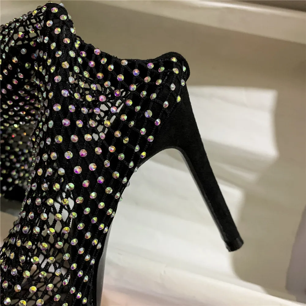 MILI-MIYA пикантные сетчатые женские носки с кристаллами; Обувь без шнуровки для ночного клуба; Очень высокий тонкий каблук; Модная Уличная обувь для женщин