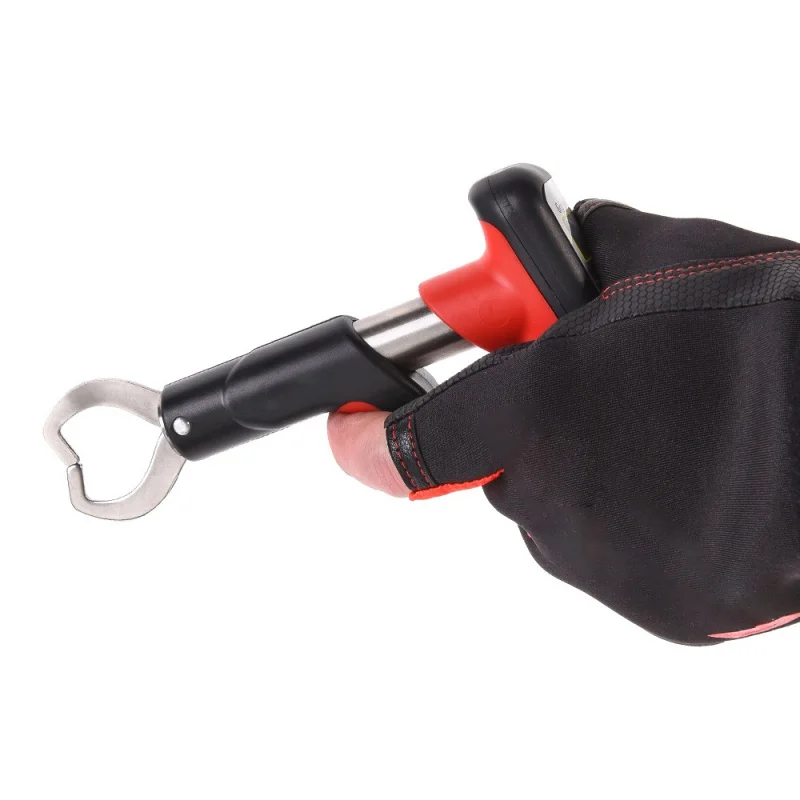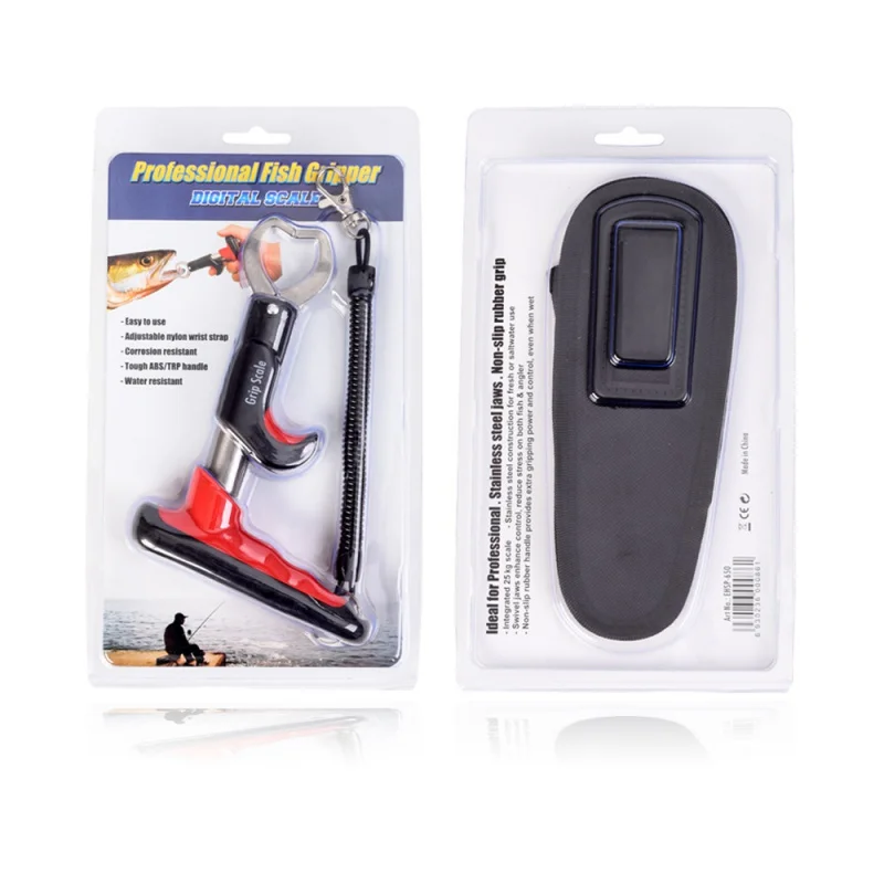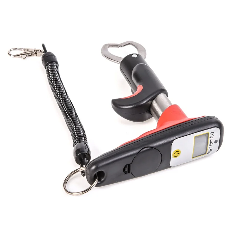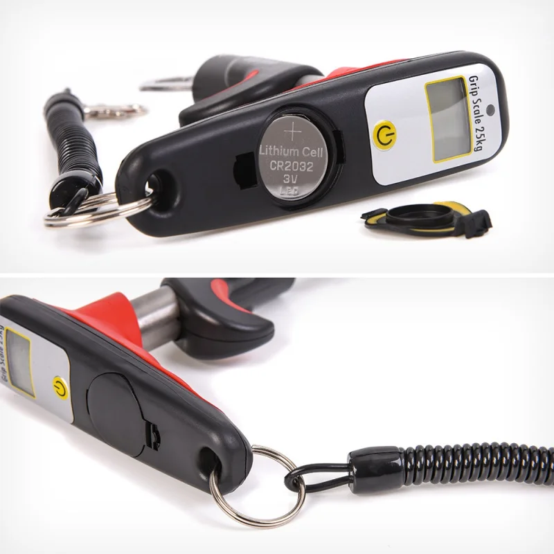 Specifications: Color:Black Material:ABS & Stainless Steel Spring action jaws Temperature function Water resistant Features: Weighing range: 0-25kg ABS impact resistant stainless steel construction Shuts-off automatically B:2*AA Battries(not included) A:1*CR2302 Batteries Included. Grip swivels independently of handle for safe and secure handling of fish