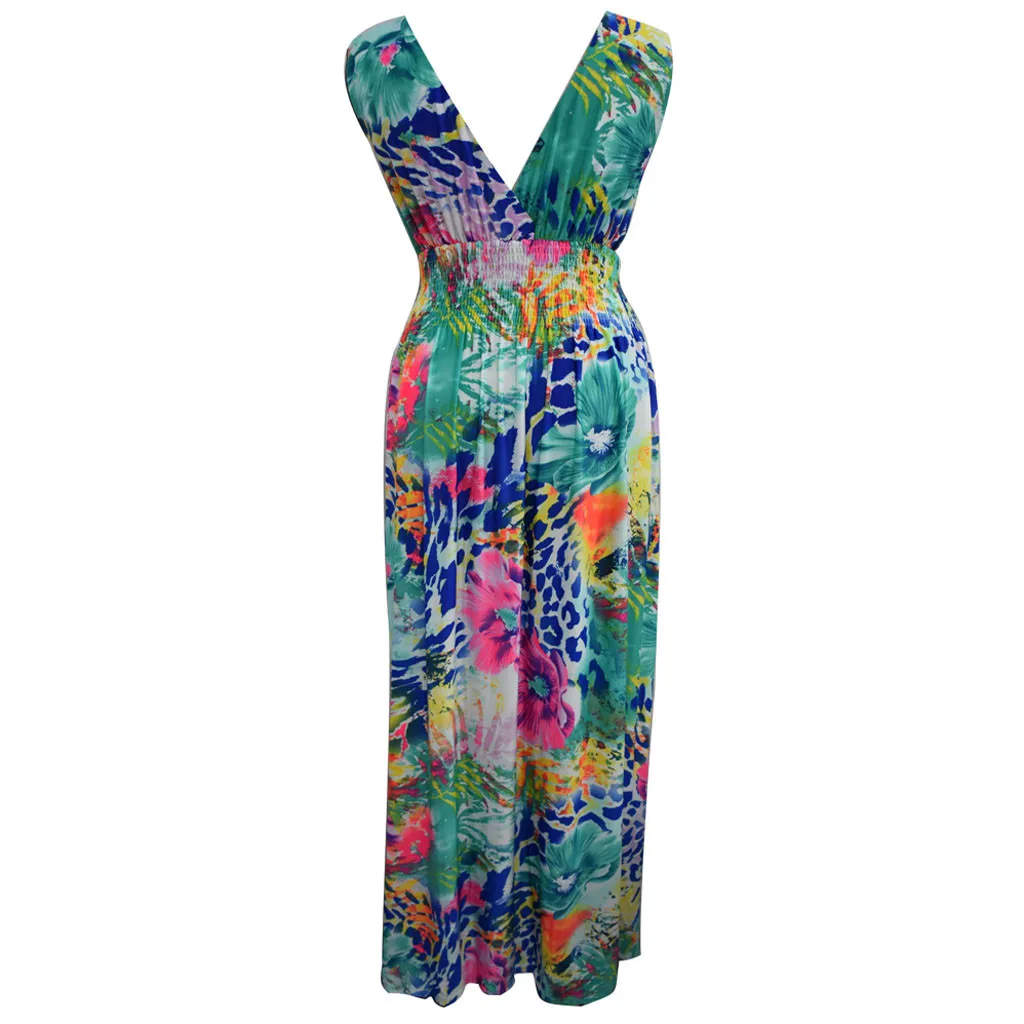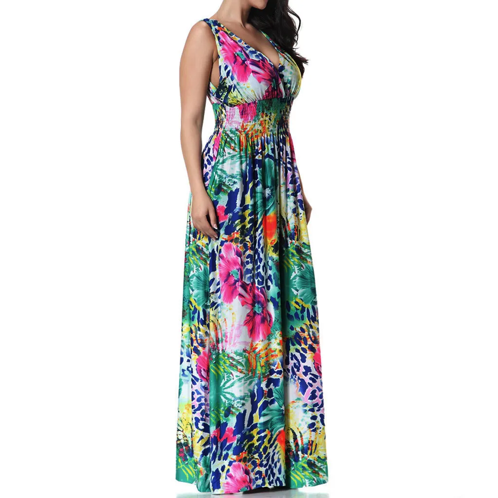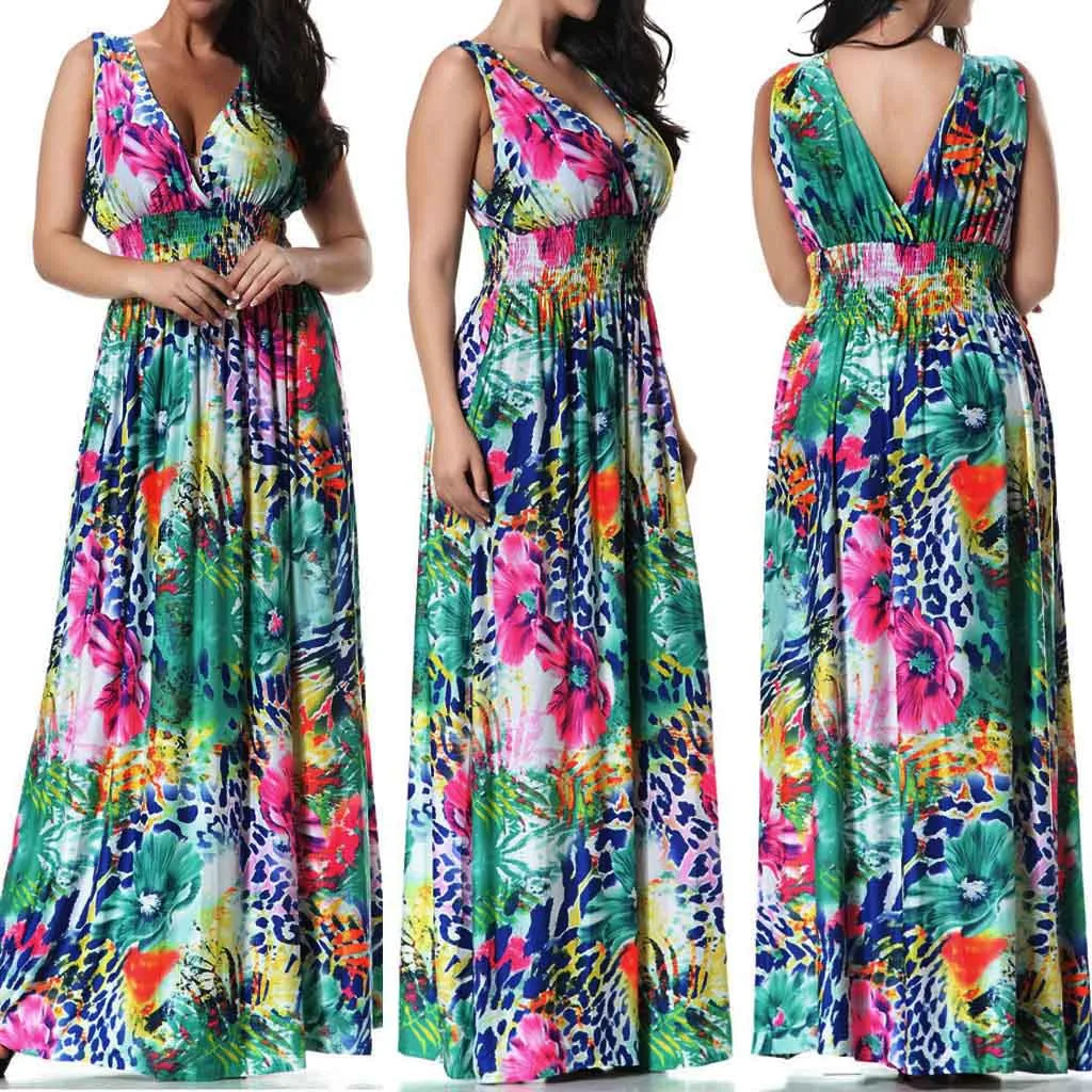 1. Особенности: Модный сексуальный, размера плюс, принт, без рукавов, v-образный вырез, открытая спина, длинное платье.