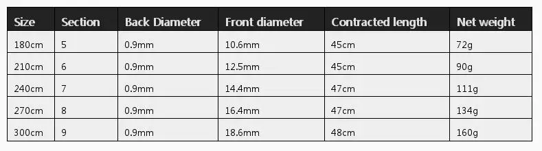 300 см 9 0,9 мм 18,6 мм 48 см 160 г