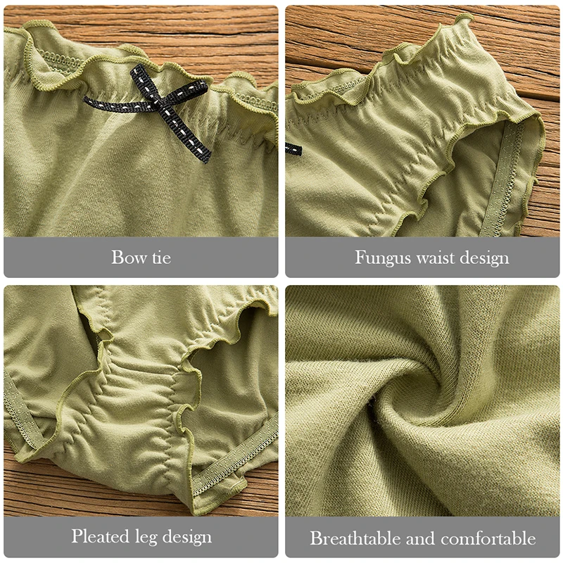 Женское нижнее белье с милым бантом, плиссированное кружевное бесшовное нижнее белье, хлопковые Однотонные трусы, нижнее белье со средней талией, милые трусы для девочек.