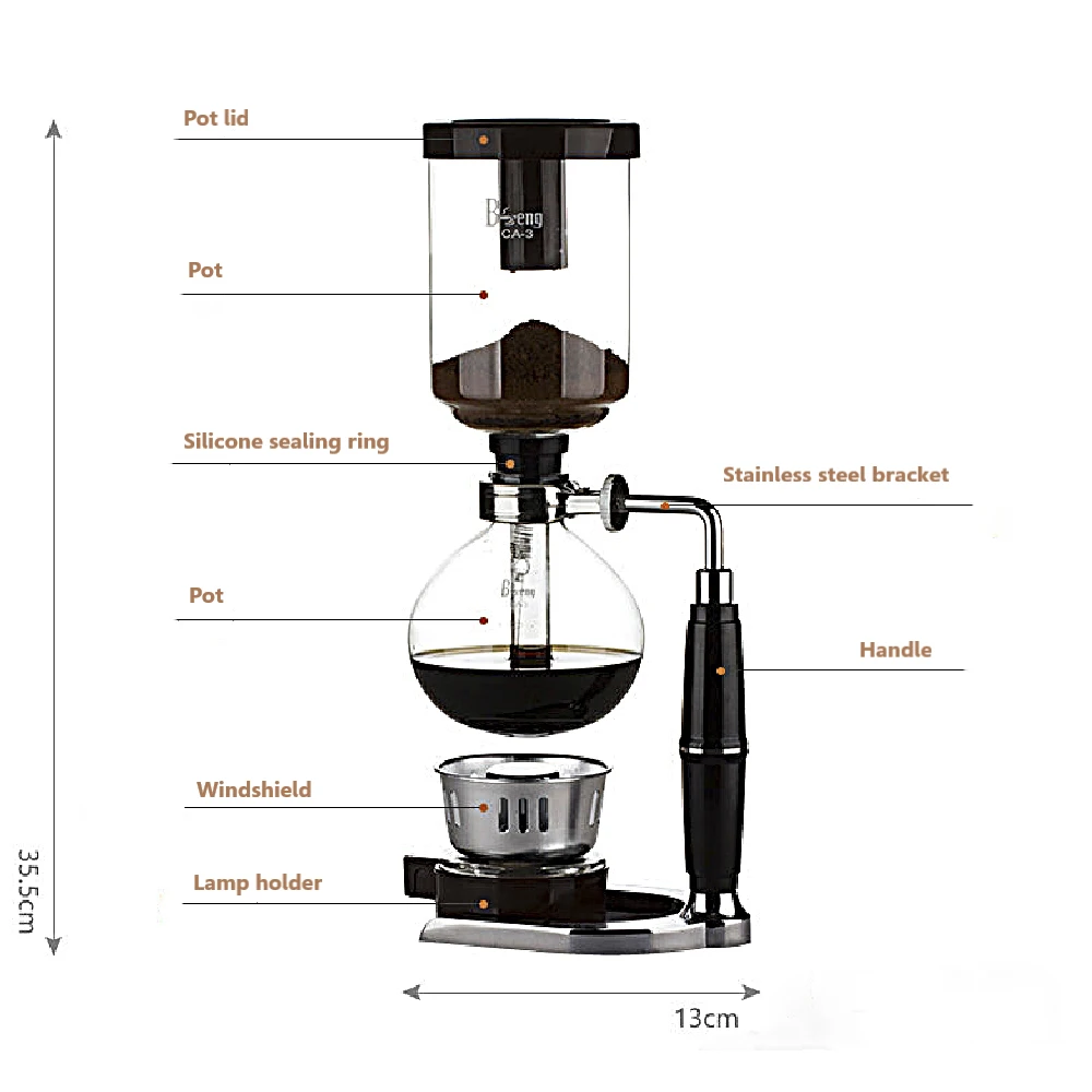 3 чашки сифон Кофе чайник сифон горшок вакуумная машина ручной кофе термостойкий стеклянный тип сифон кофе машина фильтр