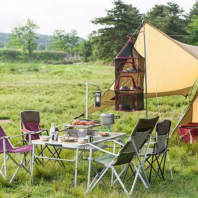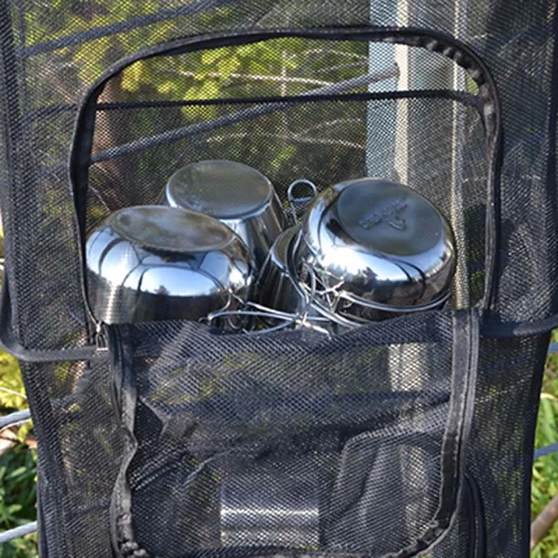 Camping Dry Net, 4 Layer Folding Hanging Mesh Dish Dryer Rack Shelf Food Storage Net Basket for BBQ Tableware, Vegetables, Fis