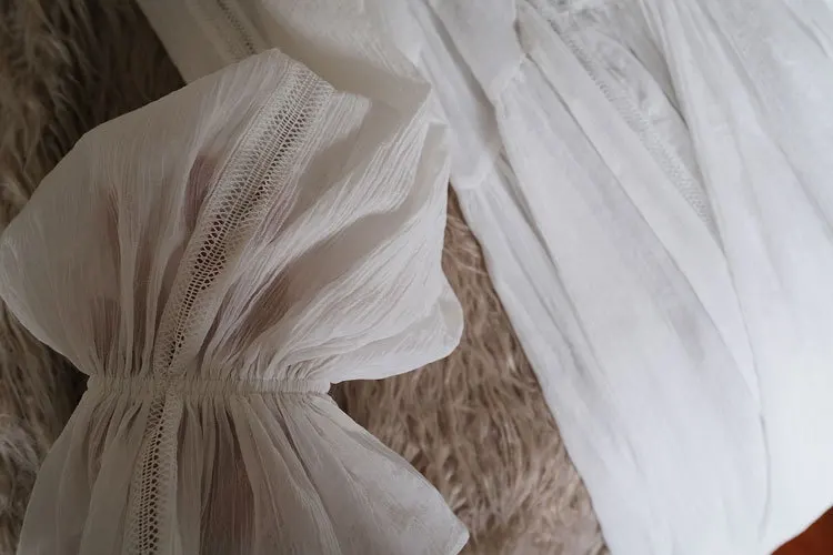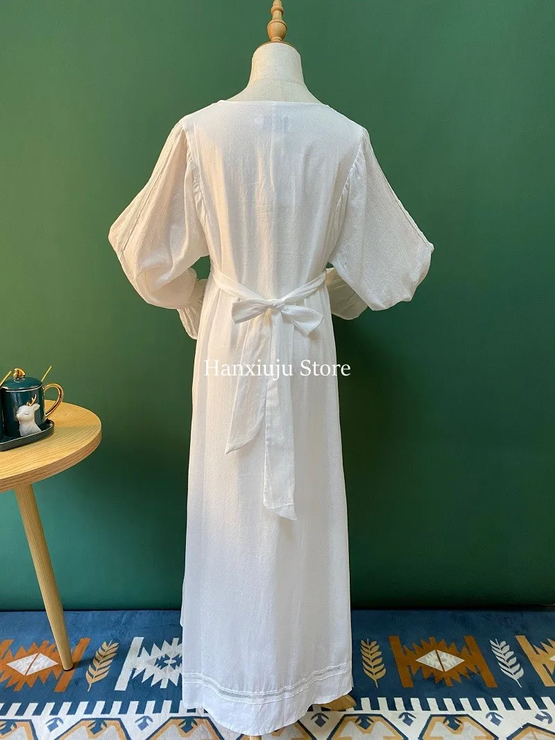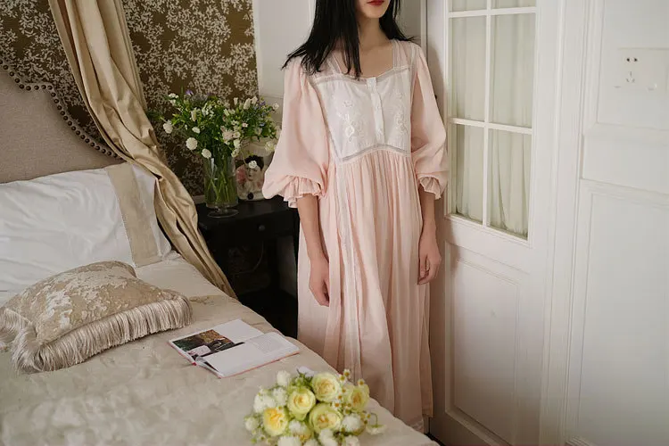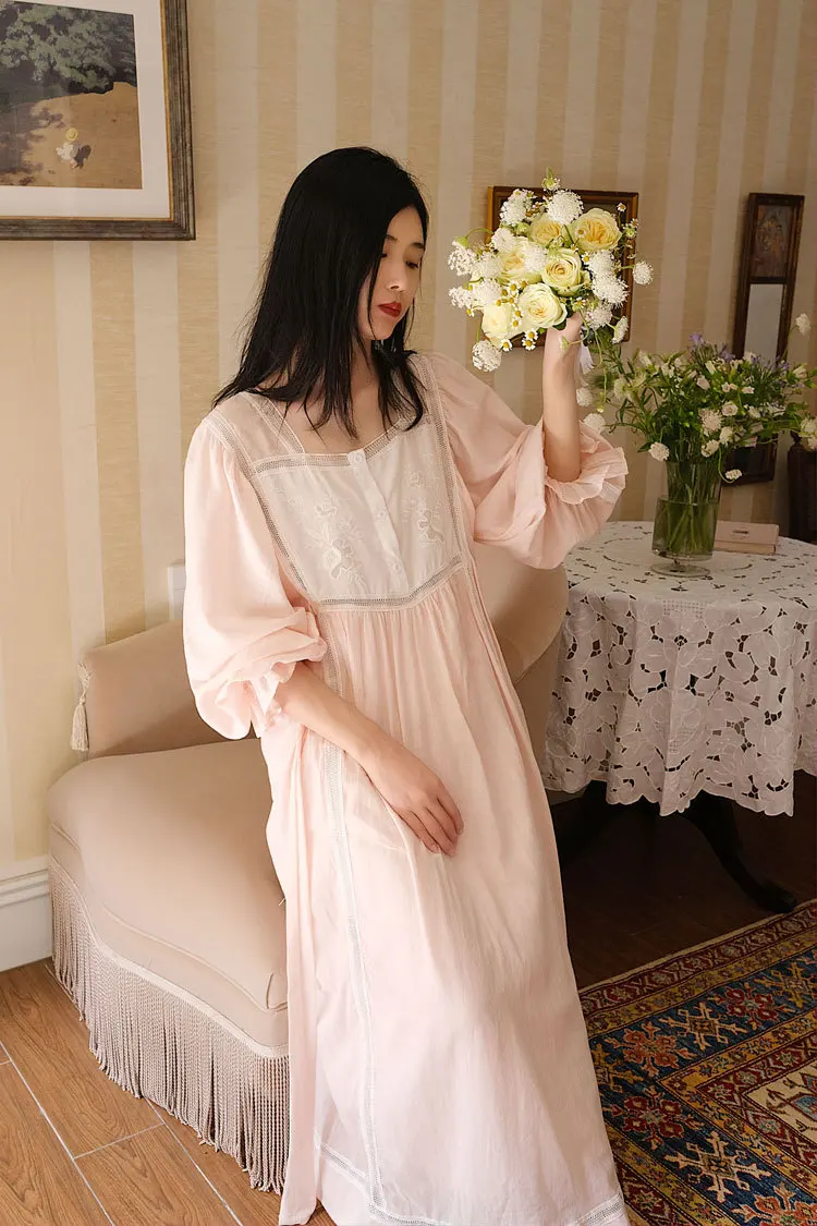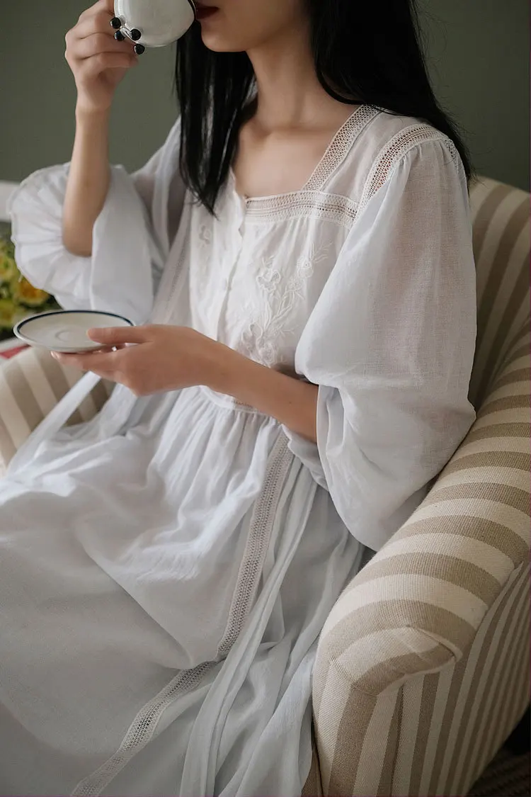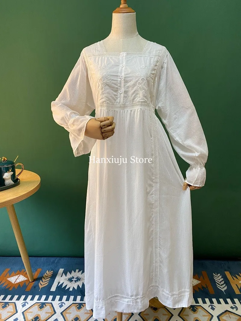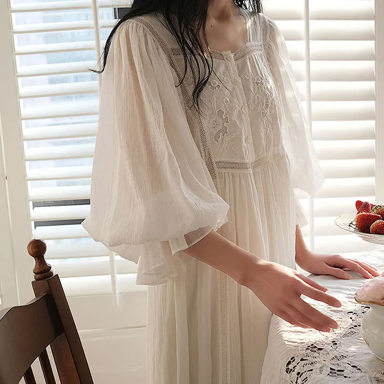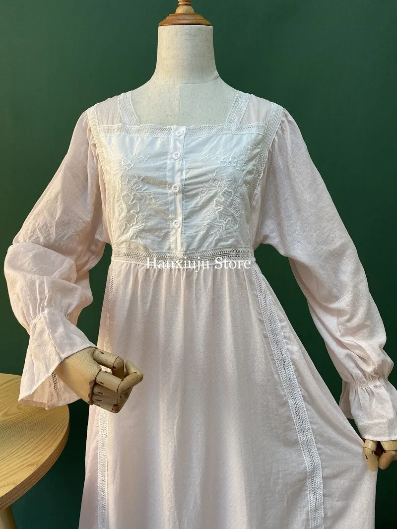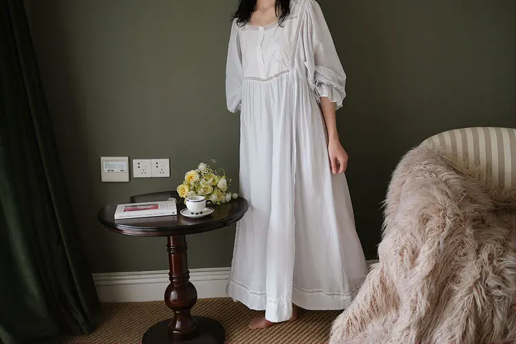 Хлопковая изящная винтажная длинная ночная рубашка с вышивкой