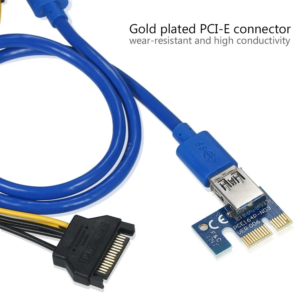 Особенности: 4 высококачественные твердые конденсаторы для надежной и безопасной доставки электроэнергии. 2 светодиодный индикатор показывает состояние подключения, обеспечивает более безопасную работу. Удлинительный Кабель USB 3,0 23,6 дюйма, что обеспечивает большую гибкость при размещении устройств PCI-E. 1x Адаптерная карта может быть вставлена в любой слот, который является 1x/4x/8x/16x. Использование 6pin до 15pin усиливает источник питания, может уменьшить нагрузку на основную плату и увеличить источник питания. Позолоченный разъем PCI-E, износостойкий и высокая проводимость. С SRS цифровой крюк кабельные стяжки, удобно организовать кабели. 4 отверстия для крепления переходной карты к вашей установке. Характеристики: Материал: FR4 Тип интерфейса: 1x, 4x, 8x, 16x Длина удлинительного кабеля: 60 см Длина кабеля SATA: 20 см/7,9 см Подъемная плата Szie: 12,8*4,4*1,8 см/5*1,7 * 0.7in Размер карты адаптера: 3,1*2,7*0,9 см/1,2*1,1 * 0.4in Размер посылка: 14*13,5*2,5 см/5,5*5,3*1 дюйм Вес посылка: 570 г/20,11 унций Примечание: -Пожалуйста, не забудьте выключить питание при подключении или отключении удлинительного кабеля PCI-E. -Чтобы предотвратить повреждение ваших компьютеров и другого оборудования, пожалуйста, найдите подходящий конец для подключения кабеля. -Пожалуйста, не забудьте удерживать гнездо при вставке провода, чтобы не сломать штифты для разъема. Посылка: 6 * PCI-E 16x подъемные платы 6 * PCI-E 1x карты адаптера 6 * USB 3,0 удлинительные кабели 6 * SATA кабели питания