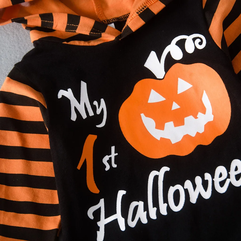 Для детей ясельного возраста детская одежда для девочек и мальчиков с рисунком тыквы для Хэллоуина с надписью комбинезоны детские одежда