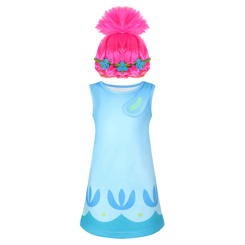 Розничная продажа, парик тролля + платье, комплект, детские костюмы для девочек, карнавальные детские костюмы, платье одежда с троллями костюм на Хэллоуин, платье