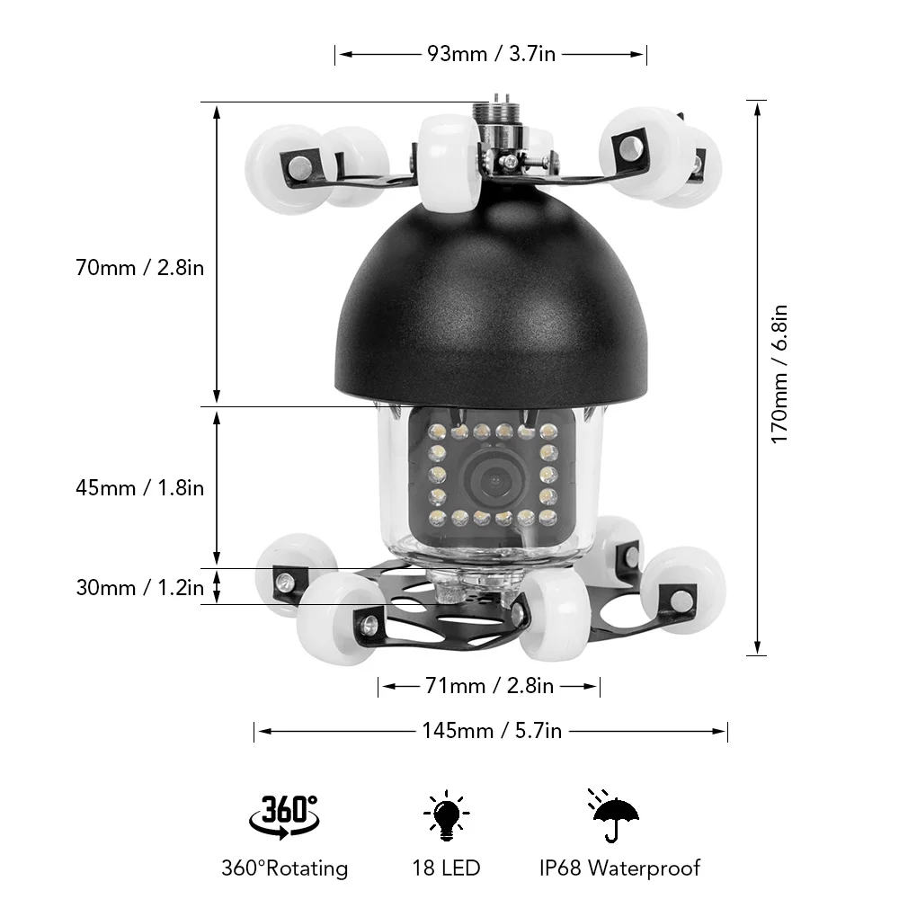 Водонепроницаемая камера IP68 вращается на 360 ° из стороны в сторону для разных углов обзора.