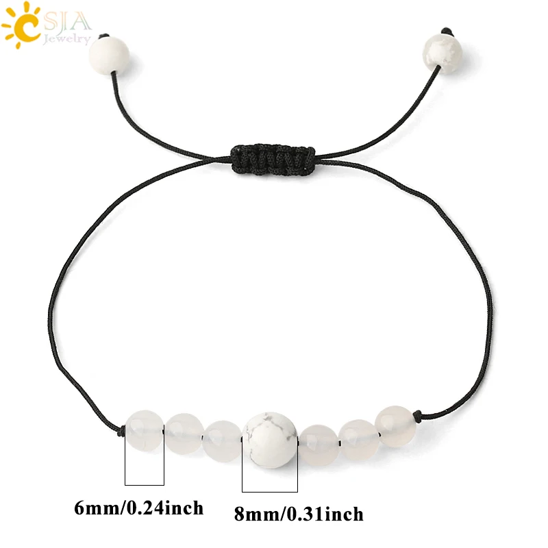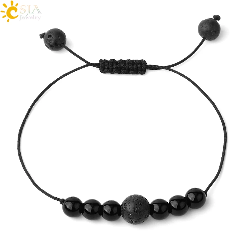 CSJA натуральный оникс плетеные браслеты черный белый Агаты бусины регулируемый браслет для женщин мужчин пара подарки счастливые ювелирные изделия G568