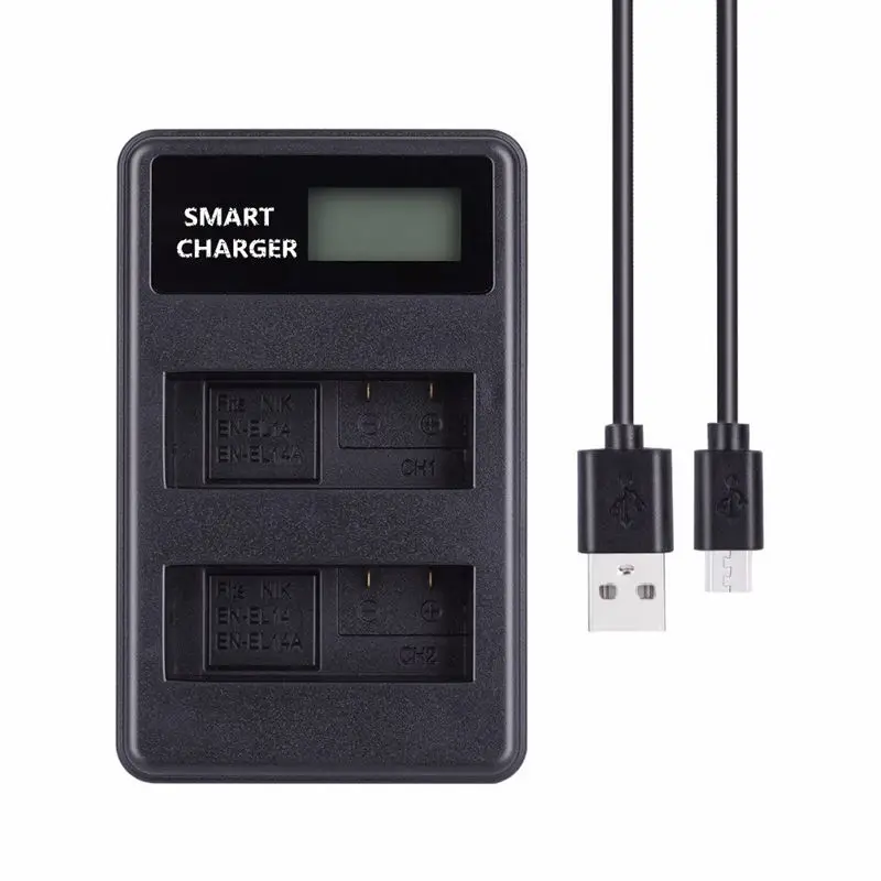 Основная особенность зарядного устройства: предназначен для аккумулятора Nikon EN-EL14A/Bateria/Batery/akku. Заряжайте две батареи одновременно и независимо. С ЖК-дисплеем Sn, чтобы показать состояние зарядки каждого аккумулятора. С кабелем Micro-USB для легкой зарядки.