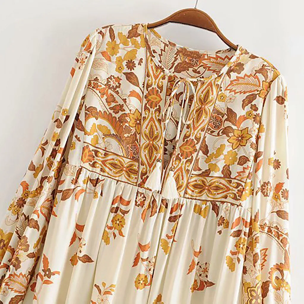 Женские богемные кисточки с принтом и широкими лентами и длинные платья