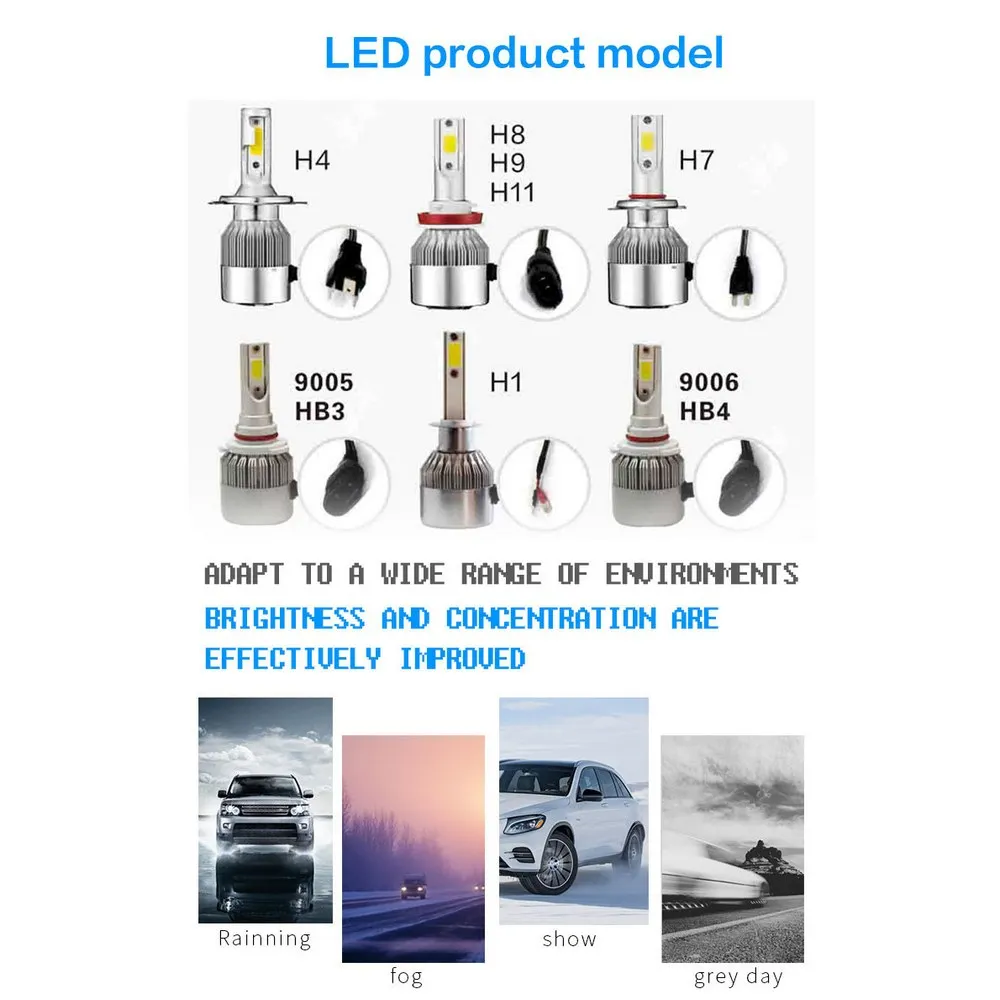 【 На 300% ярче галоген】-светодиодный чип высшего качества для автомобилей с 36 Вт, 3600лм для пары, яркий белый 6000 К. Супер Сфокусированная Конструкция луча обеспечивает более широкий и Дальний диапазон освещения, который в 3 раза ярче, чем ваша оригинальная галогенная лампа.