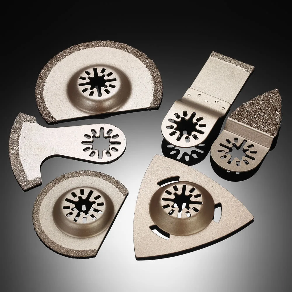 Этот профессиональный и совместимый набор режущего лезвия предназначен для многофункциональных электроинструментов с 6 шт осциллирующими мульти-инструментальными аксессуарами. Шлифовальные листы из сплава используются для резки бетона, пластмассы, дерева, шпатлевки, латуни, бронзы и листового металла. Эмери шлифовальный лист используется для резки твердых предметов, таких как цемент, керамическая плитка, камень и так далее. Особенности: Высокое качество и абсолютно новый многофункциональный инструмент лезвие с новейшей пилой внутреннее отверстие (универсальное цветочное отверстие). Отлично подходит для резки твердых предметов, таких как бетон, цемент, керамическая плитка, камень и так далее. Обеспечивают большую долговечность, длительный срок службы и быструю скорость резки. Отличный аксессуар также для резки пластмасс, дерева, шпатлевки, латуни, бронзы и листового металла. Высокая твердость, высокая износостойкость и отличная ударопрочность. Технические характеристики: Цвет: золото Материал: сплав, Эмери Подходящие режущие предметы: бетон, цемент, керамическая плитка, камень, пластик, дерево, шпатлевка, латунь, бронза, листовой металл и т. д. Совместимость с брендами осциллирующих мульти-инструментов: для Fein, Multimaster, Dremel, Makita, Bosch, Rockwell, Sonicrafter, Worx Тип: пильного диска Количество: 6 шт. Вес изделия: прибл. 170 г/6,00 унций (6 шт шлифовальный лист) Размер посылка: прибл. 10*8*2,5 см/3,94*3,15 * 0.98in Вес посылка: прибл. 174 г/6,15 унций Посылка список: 1*64 мм полукруглый карбидный шлифовальный лист 1*78 мм шлифовальный лист из треугольного карбида 1*88 мм полукруглый карбидный шлифовальный лист 1*78x31 мм шлифовальный лист из карбида 1*78x57 мм подковы крюк Эмери шлифовальный лист 1*87x31 мм Эмери прямой шлифовальный лист