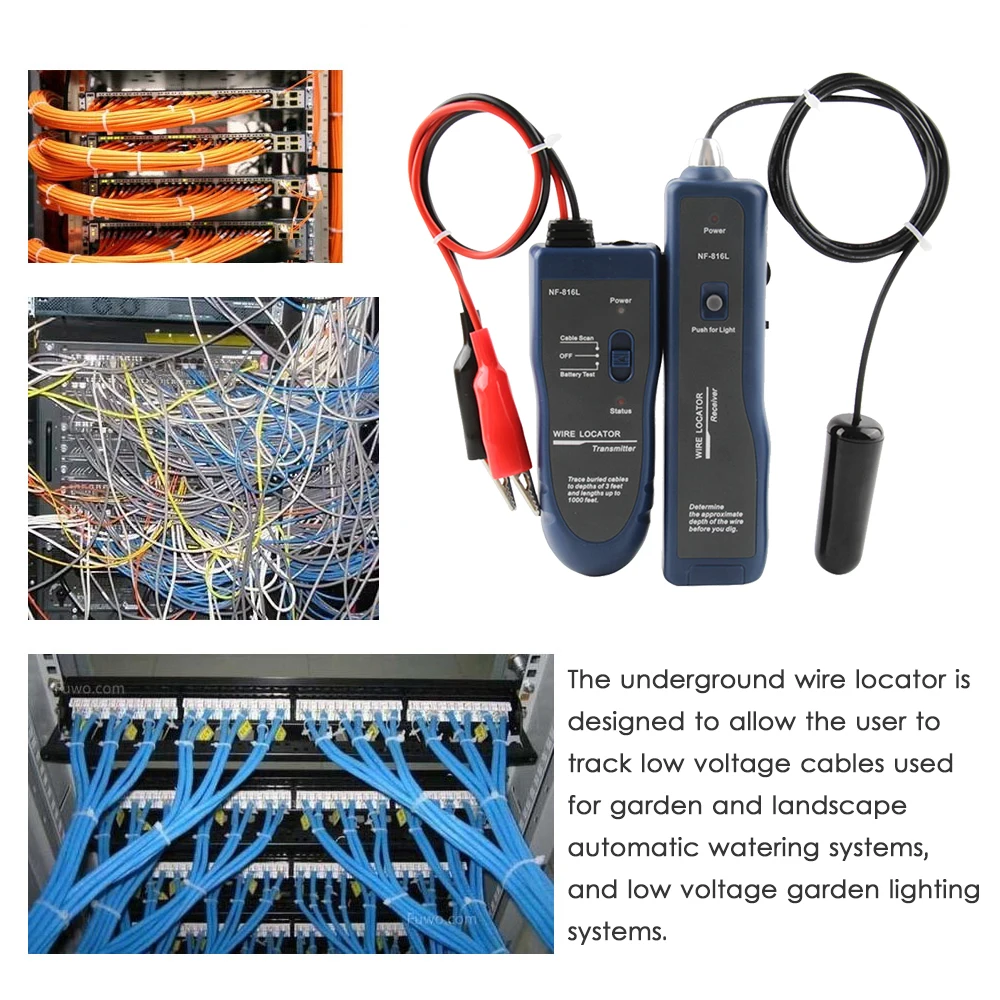 Подземный локатор проводов предназначен для того, чтобы позволить пользователю отслеживать низковольтные кабели, используемые для садовых и ландшафтных систем автоматического полива, и низковольтных садовых систем освещения. Его также можно использовать для отслеживания других металлических кабелей.