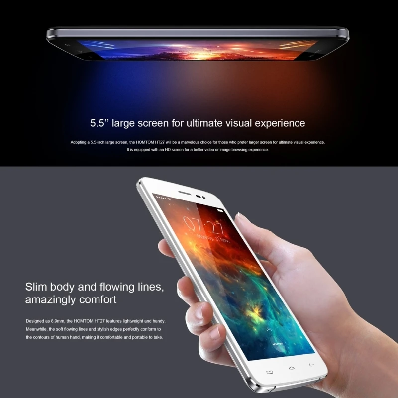 Внимание: обратите внимание, что цена, которую вы платите в нашем магазине, не включает ваш Таможенный налог в вашей стране Спецификация: Общий Модель HT27 Дизайн бар Количество sim-карт, две sim-карты Типы sim-карт micro Sim Процессор MTK6580 Процессор процессора четырехъядерный, 1,3 ГГц Система Android 6,0 ОЗУ 1 Гб Rom 8 Гб Внешняя карта памяти TF до 64 Гб (не входит в комплект) Датчик g-сенсор Поддержка языков арабский, каталанский, голландский, чешский, хорватский, датский, французский, английский, финский, филиппинский, греческий, немецкий, венгерский, хинди, иврит, индонезийский, итальянский, японский, малайский, норвежский, персидский, португальский, польский, русский, румынский, сербский, испанский, турецкий, тайский, украинский, Вьетнамский, простой китайский, традиционный китайский, эстонский Сеть Поддержка WiFi GPS да, а-GPS Bluetooth Да, V4.0 Дисплей Размер экрана 5,5 дюйма Тип экрана IPs Разрешение 1280x720 пикселей Камера Двойное количество камеры Фронтальная камера 5.0mp Да функция красоты Задняя камера 8.0MP Запись видео да Формат мультимедиа Аудио MP3 Видео MP4 Изображение GIF, JPEG Подключение Порты 2 слота для карт micro SIM 1 слот для tf-карты 1 x Micro USB 1x3,5 мм разъем для наушников Аккумулятор Тип батареи Литий-полимерный аккумулятор Емкость аккумулятора 3000 мАч Время работы в режиме разговора 12 часов Время работы в режиме ожидания 200 часов Размеры и вес Размер 154*77,8*8,9 мм Посылка включает в себя Посылка: 1 телефон 1 х адаптер питания 1 x Руководство пользователя 1 х USB кабель
