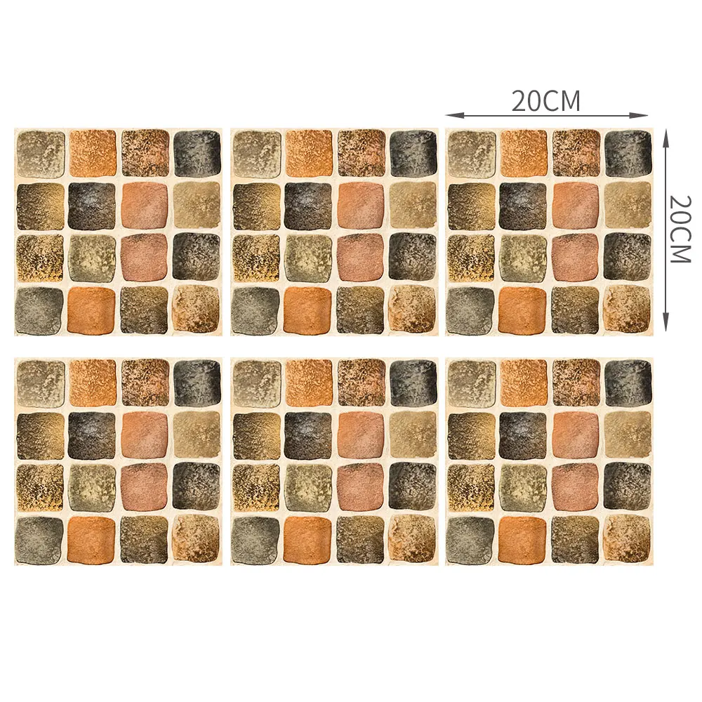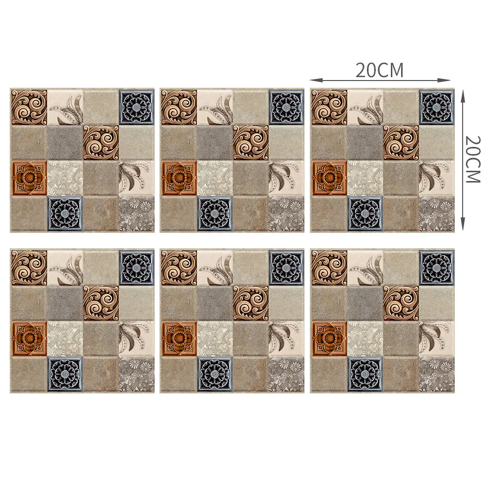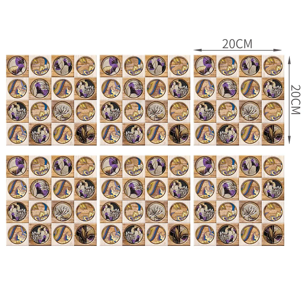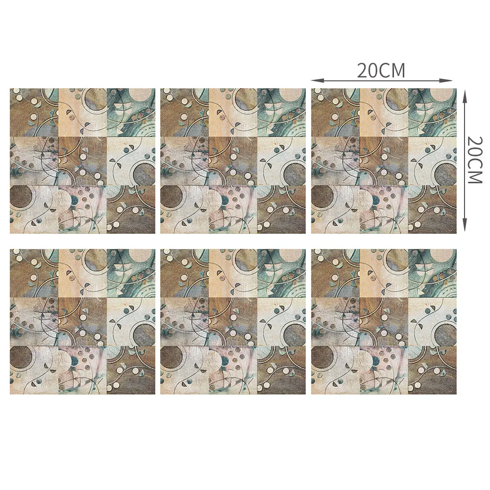 Размер полученного продукта: 20*20 см * 6 шт. Материал изделия: экологически чистый ПВХ Функция: 1. Водонепроницаемый. На поверхности есть гладкая водонепроницаемая мембрана, которая обладает хорошим водонепроницаемым эффектом 2. Можно разместить в ванной, кухне. Шкафы, столы и т. Д., на гладкой поверхности 3. Изделие является самоклеящимся, и защитную бумагу можно прикрепить сразу после отрыва задней части. Очень удобно В наборе 6 шт. Набор узоров одинаковый, размер также может быть изменен (требования к минимальному количеству на заказ), при необходимости обратитесь в службу поддержки клиентов