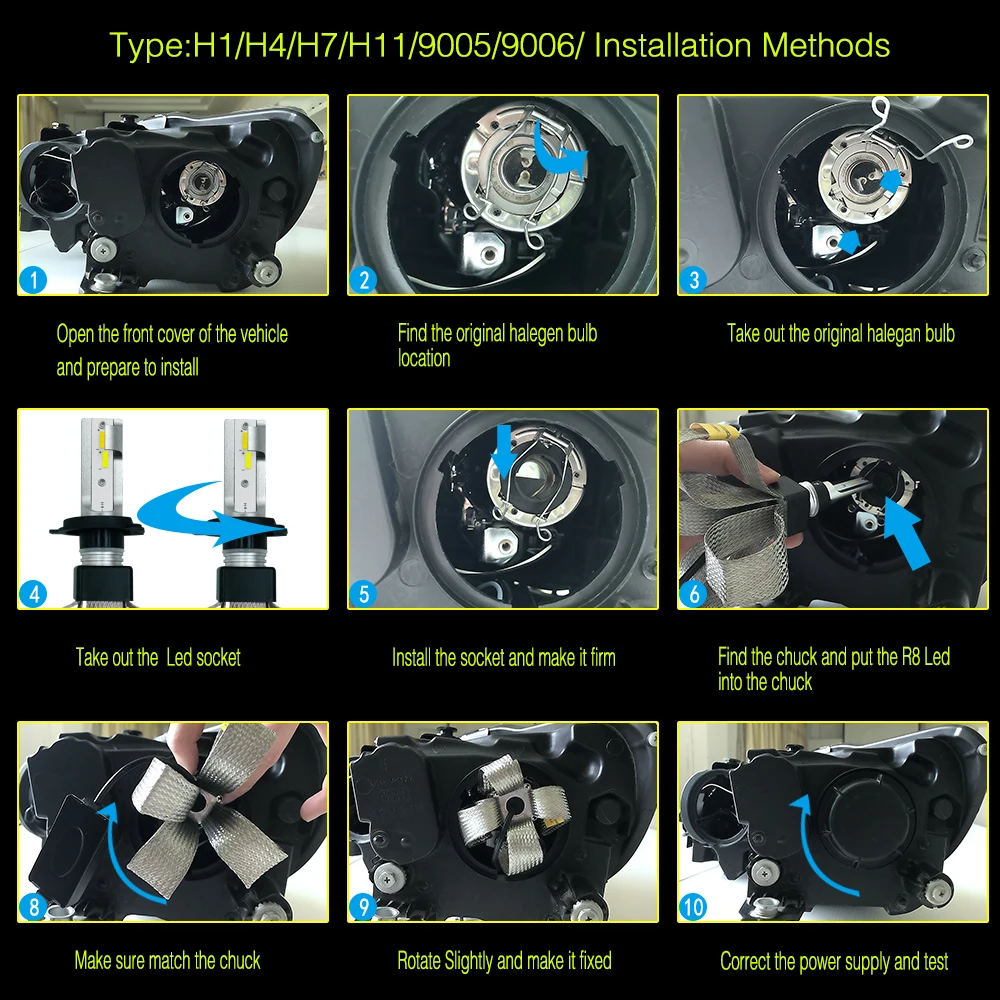 2. Модернизированные лампы. Он может переключить светильник на чистый белый 6000K, 3000K Золотой, 4300K теплый белый. Это может изменить цветовую температуру в зависимости от погоды в реальном времени. Переключение мгновенного светильник через выключатель питания. Легко справиться со всеми видами погоды, сопровождение для безопасного вождения.