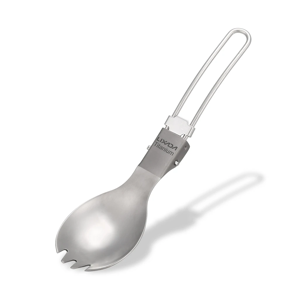 Титановая Складная ложка-вилка с матовой отделкой, очень прочная.