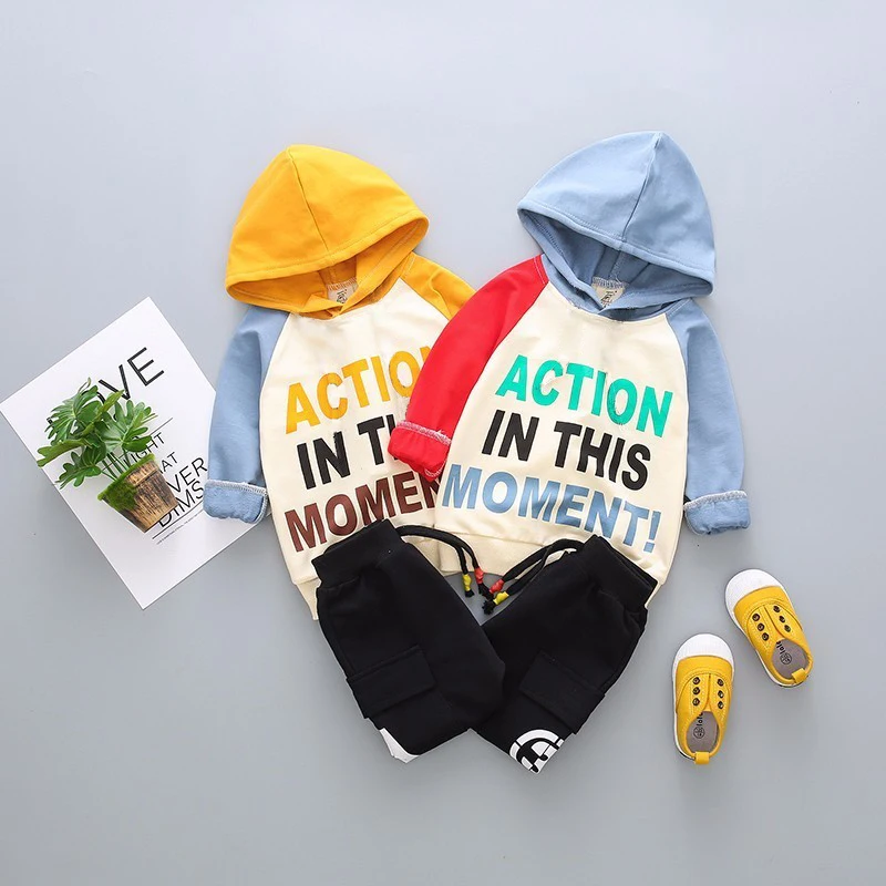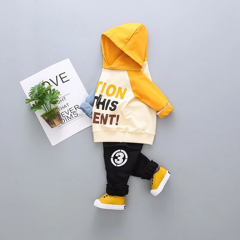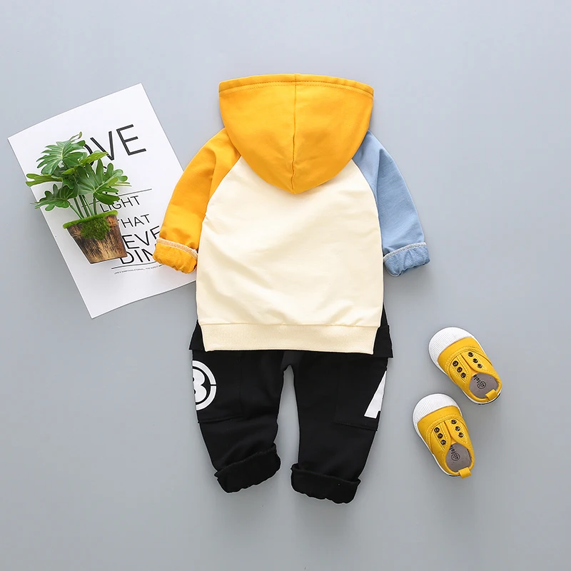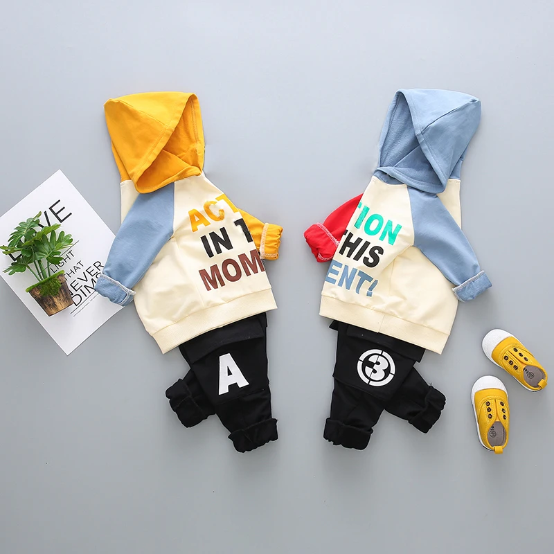 Весенне-Осенняя детская одежда для отдыха куртка с капюшоном и надписью для маленьких мальчиков и девочек, штаны 2 шт./компл., детская одежда для младенцев спортивный костюм для малышей, для От 0 до 4 лет