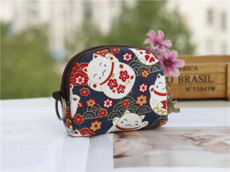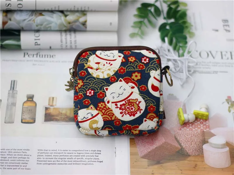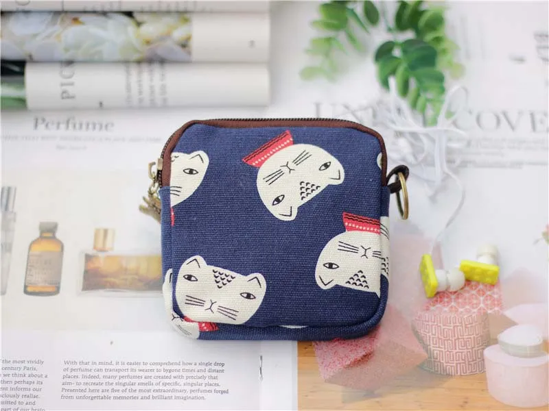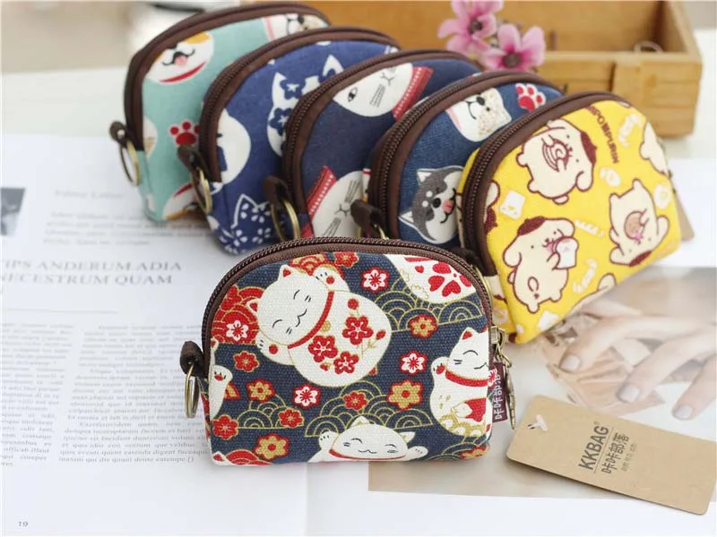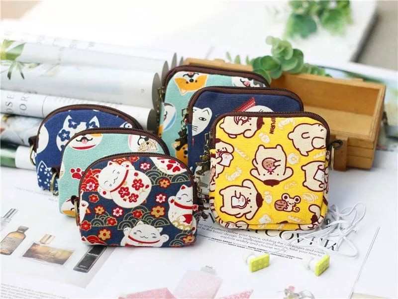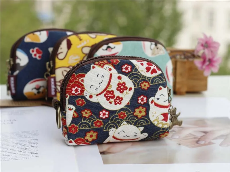 Маленькая холщовая мини-сумка в стиле ретро с кошкой, женские кошельки для монет Kawaii, короткий кошелек для девочек, сумочки для карт, женские ручные кошельки для детей