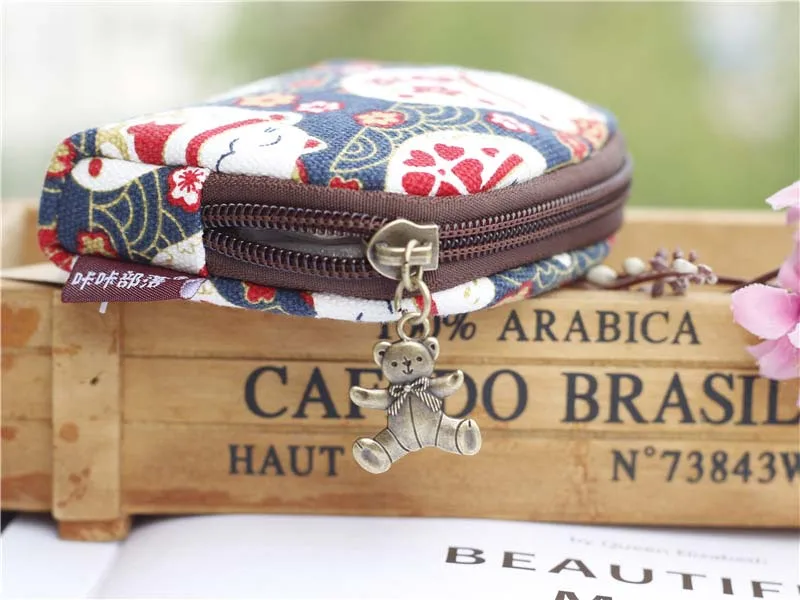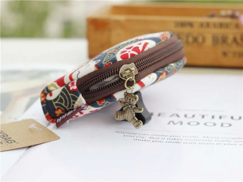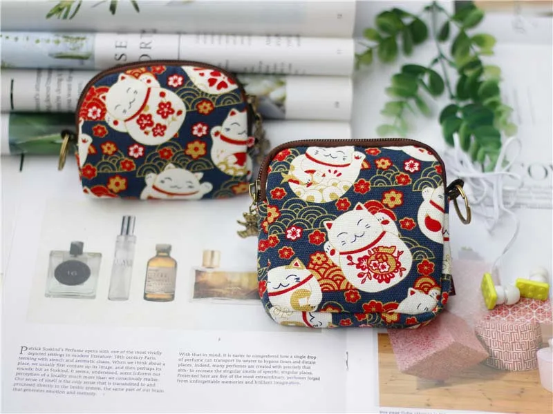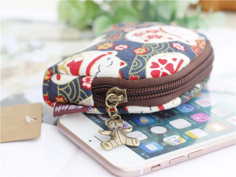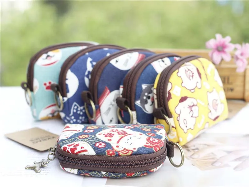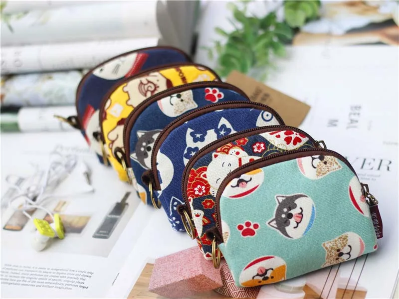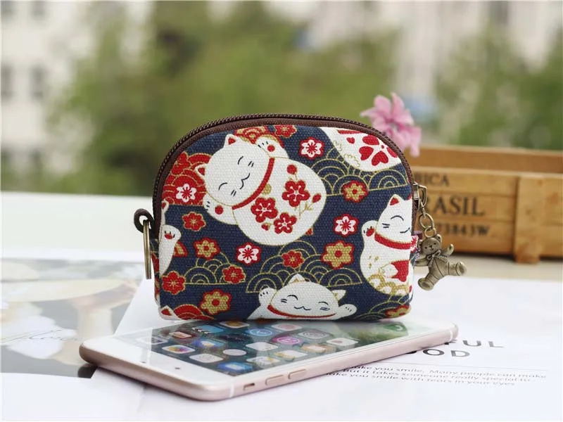 Маленькая холщовая мини-сумка в стиле ретро с кошкой, женские кошельки для монет Kawaii, короткий кошелек для девочек, сумочки для карт, женские ручные кошельки для детей