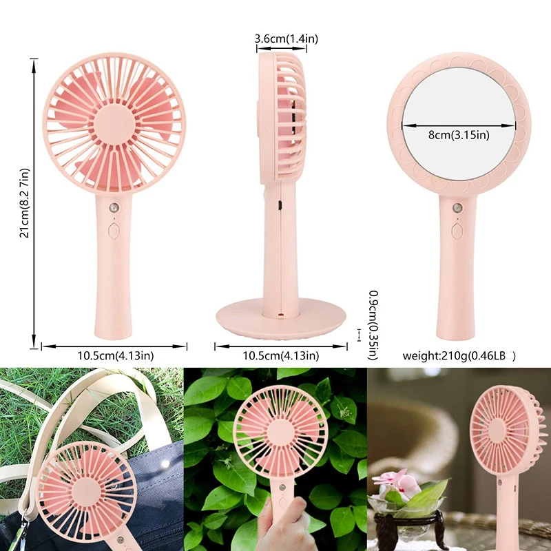 Многоцелевой дизайн: Усовершенствованный ручной вентилятор, это не только Портативный Персональный вентилятор, настольный вентилятор, но и зеркало для макияжа. В жаркий летний день, когда пот ломает макияж, вам больше не придется паниковать. Вы можете сделать макияж свободно в любое время и в любом месте. Не беспокойтесь, ваш бюджет может легко себе это позволить.
