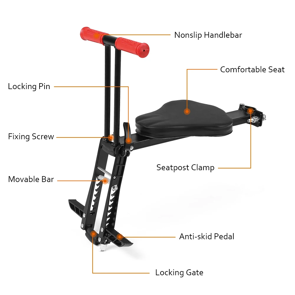 Это переднее сиденье велосипеда позволяет вам следить за вашим ребенком и дорогой одновременно. Складывается в компактный размер для удобства хранения и транспортировки.