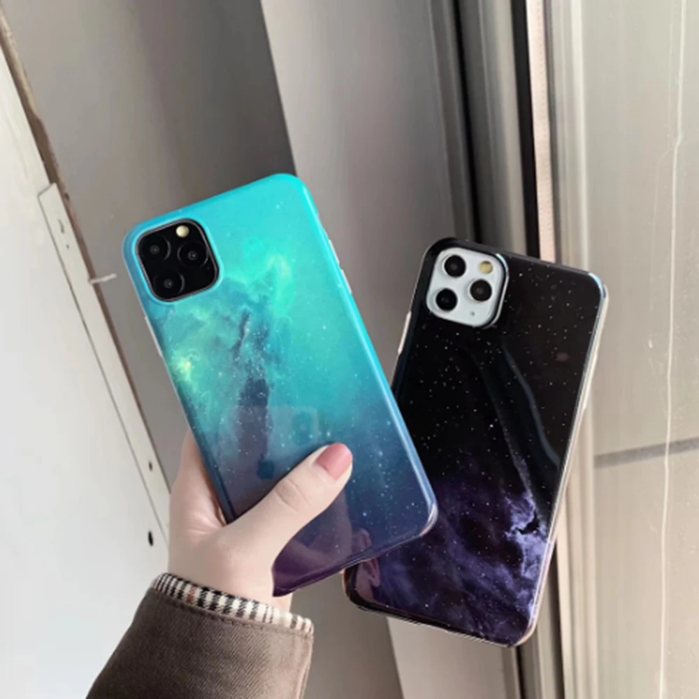 Противоударный чехол для телефона iPhone 11 Pro Max XR XS Max 7 8 Plus X Мягкая задняя крышка Звездный синий свет Защита от вспышки задняя крышка