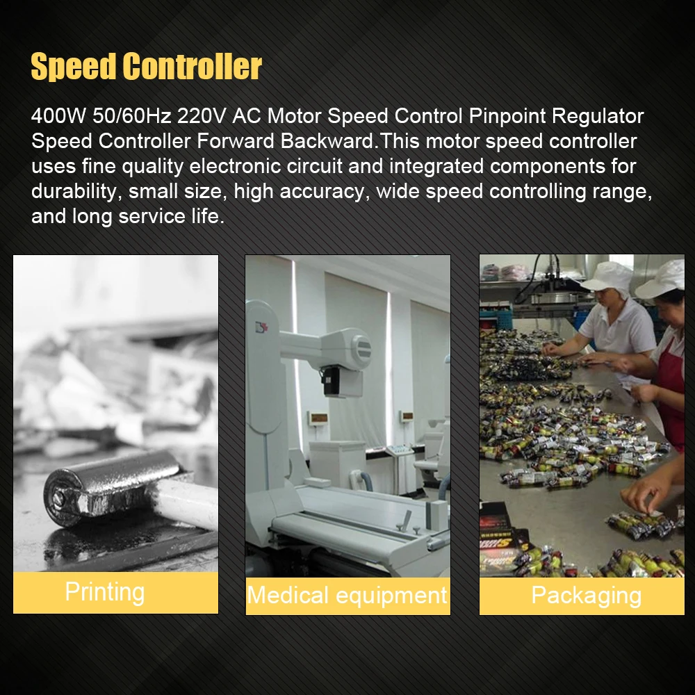 Этот контроллер скорости двигателя использует качественную электронную схему и интегрированные компоненты для долговечности, небольшого размера, высокой точности, широкого диапазона контроля скорости и длительного срока службы.