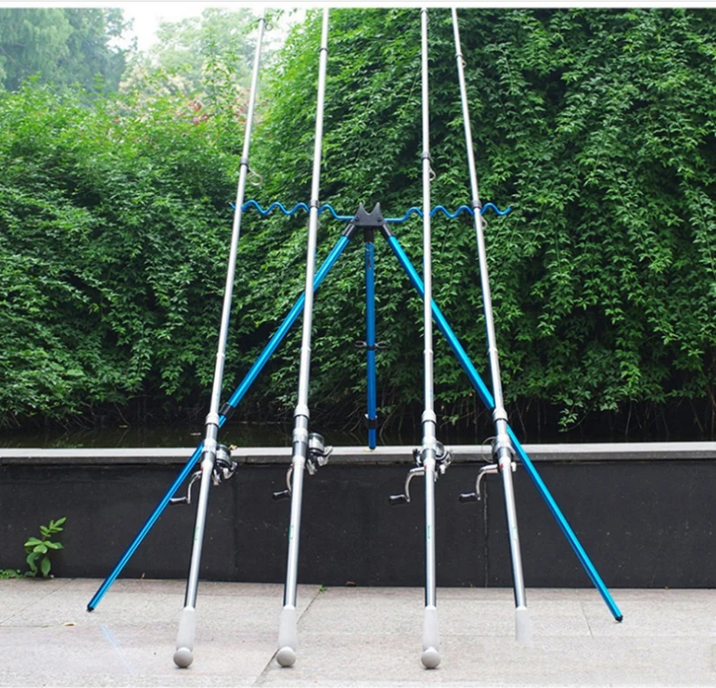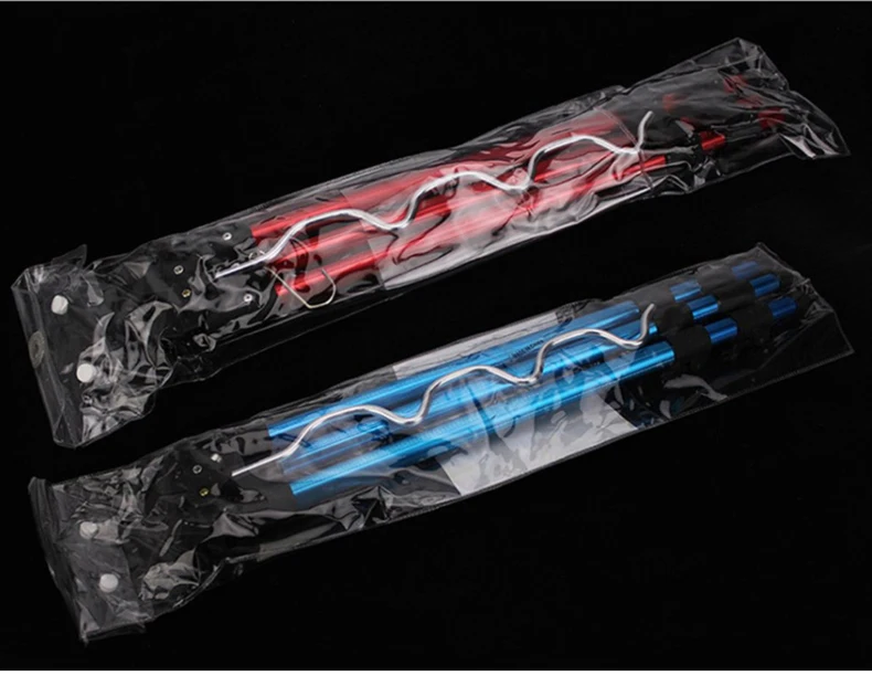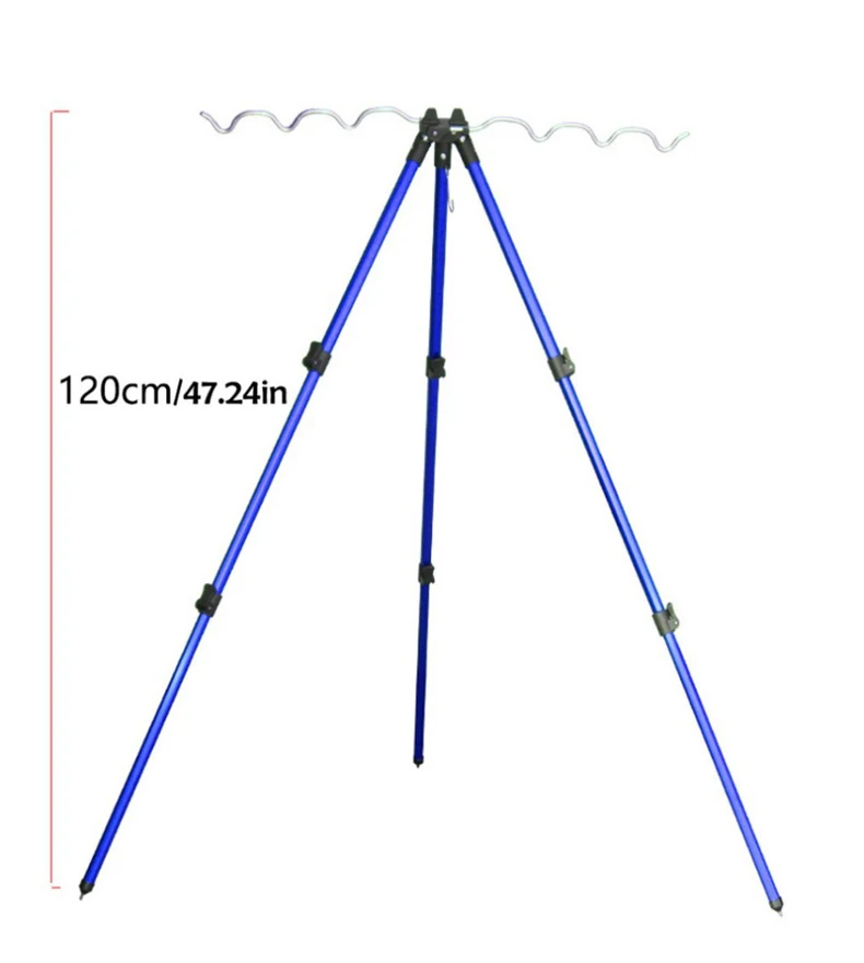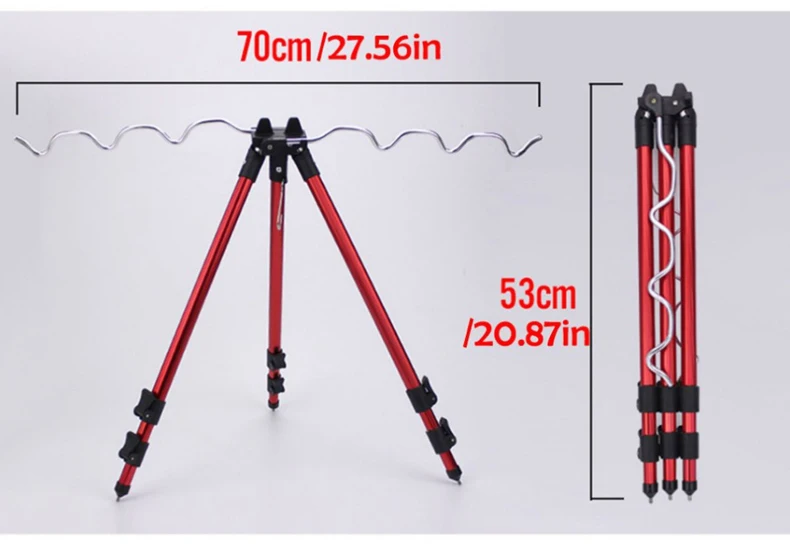 О: серебро (7 пазов) Закрытая длина: 35 см Увеличенная длина: 62 см B: красный/синий (7 пазов) Закрытая длина: 53 см Увеличенная длина: 120 см Особенность: -Высококачественный алюминиевый сплав, прочный и долговечный. -Конструкция штатива, высокая стабильность. -Складная конструкция, легко носить с собой. -Конструкция крючка позволяет повесить ведро для повышения устойчивости. -Многослойный держатель для стержня, вмещает 7 полюсов