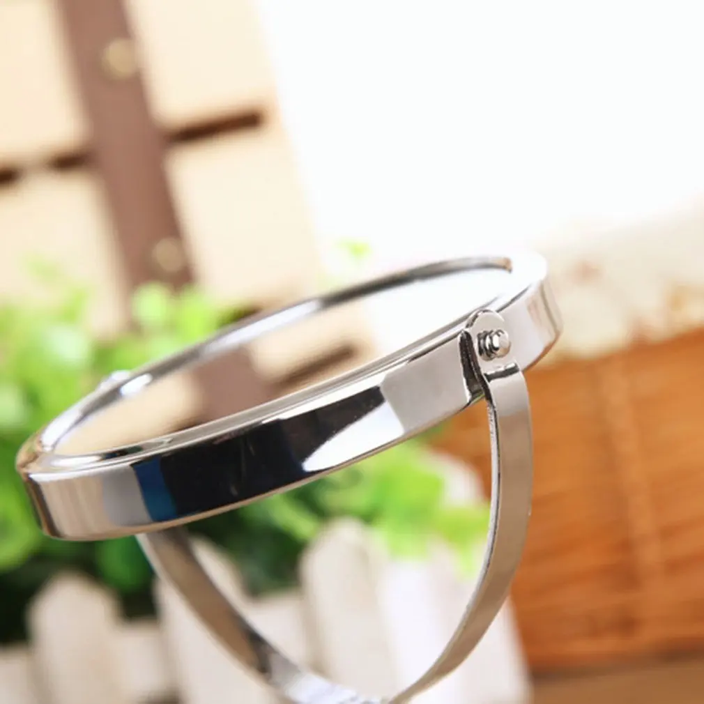 Изготовлено из серебряного зеркала и металлическая рамка материал, он прочный. Элегантный дизайн, глянцевая поверхность, подходит для любого случая. Небольшой размер и легкий, портативный для переноски. Отлично подходит для девочек и женщин. Используйте это зеркало как идеальный аксессуар для макияжа. -Различные стили, по своему желанию. Рисование линий вокруг глаз, нанесение BB крема, другие действия для макияжа, бритье, замена контактных линз и т. д., этот mirro всегда готов предложить вам чистую и блестящую среду, когда и где угодно.Технические характеристики: