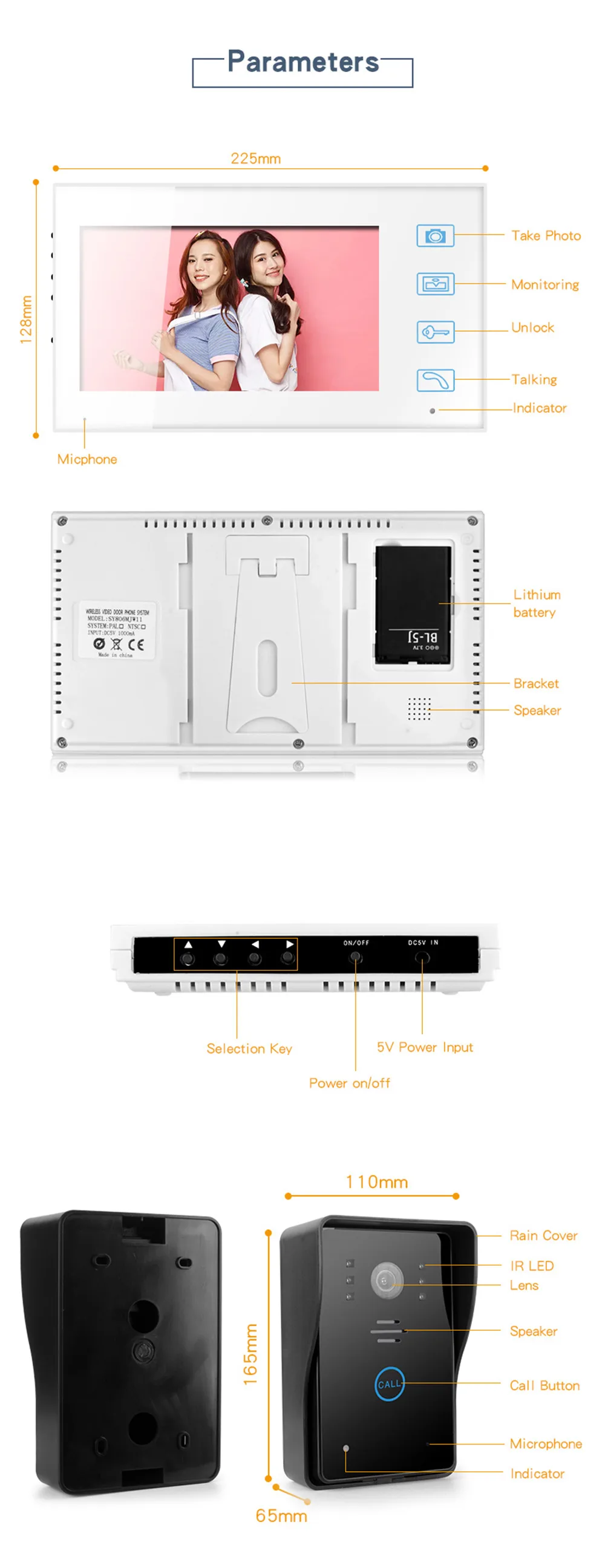 Название: 7 "wifi беспроводной умный видеодомофон 1200TVL видео дверной звонок Входная камера водонепроницаемая домашняя видео домофон система безопасности Характеристики: Модель: UCYBO-808WJ11 Обзор "Умные и инновационных 2,4 GHZ домашняя охранная WI-FI беспроводной видеодомофон система, видео-дверной звонок монитор и снятые камерой 2,4 ГГц WI-FI сигнала. Не нужно делать никаких настроек и нет необходимости в кабеле, вы можете видеть, слышать и говорить с кем-либо у вашей двери и разблокировать Защита от дождя и инфракрасный ИК Ночное 2,4 ГГц vision Видео Звонок дверной Камера: IP65 водонепроницаемый дизайн, стабильной работе в дождливую погоду, облачно, холодный и снежный день. Изготовлен с 1200TVL камерой pinhole, антиокислительная панель из алюминиевого сплава, непромокаемая, пылезащитная и Антивандальная. ИК-светодиодный светильник для лучшего ночного видения. Домашняя wi-fi Проводная электронная Wi-Fi видео домофонная система видеодомофона хороший выбор для дома и квартиры, частного дома. Максимальная поддержка 3 беспроводные экраны и 2 наружных камеры одновременно Беспроводной видео дверной звонок с беспроводной функцией управления разблокировкой, поддержка разблокировки питания и отключения питания» Описание: Примечание: после тестирования, он может хорошо работать в пределах 30 метров, где есть две стены цыпленка без углов. Различная среда имеет различные помехи сигнала, передача сигнала также должна быть разной. Кроме того, если нет никаких препятствий, никаких помех, расстояние трансмиссии будет до 150 м, однако, это просто идеальное расстояние передачи. Если вам требуется Дальняя передача сигнала, мы предлагаем приобрести проводной дверной телефон в нашем магазине. Продукт системы безопасности, который вы смотрите сейчас, является последним популярным, модным, привлекательным и удобным набором дверных телефонов с 1 камерой, 1 монитором и 1 электронным замком. Он не только имеет цветной ЖК-дисплей lager 7 '', но также является беспроводным набором для телефона. Кроме того, он использует передовые технологии и новейшие компьютерные чипы, которые высоко улучшают стабильность и долговечность системы. Дверной Телефон использует цифровую беспроводную технологию 2,4g, обеспечивая Безопасный и частный сигнал. Он также может сохранять более 100 фотографий, делая фотографии автоматически, когда Посетитель нажимает кнопку, и предыдущие фотографии будут автоматически покрыты новыми через встроенный чип. В противном случае наружная камера легко устанавливается, а внутренний монитор не требует проводов. Вы можете положить его в столовую, учебную комнату и в любом месте. Короче говоря, система видеозвонков Wi-Fi может использоваться в квартирах, виллах, гостиницах, офисах, общественных зданиях и т. д. Особенности: · 2,4 ГГц частоты обеспечивает сильный и стабильный сигнал передачи. · Камера с 6-светодиодный для ночного видения · Внутренний монитор может сохранить 100 фотографий · 7 "цветной ЖК-дисплей и 0,3 мегапиксельная камера · Домофон без рук, разблокирован беспроводным управлением · Литиевая батарея заменяется и перезаряжается. · Яркость и громкость можно регулировать · Конструкция непромокаемых чехлов значительно продлевает дождь, размывая наружную камеру · С высокочувствительным сенсорным paneland 16 видов колец для выбора · Питание может подаваться литиевы