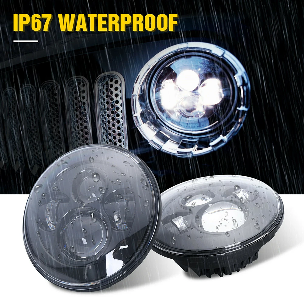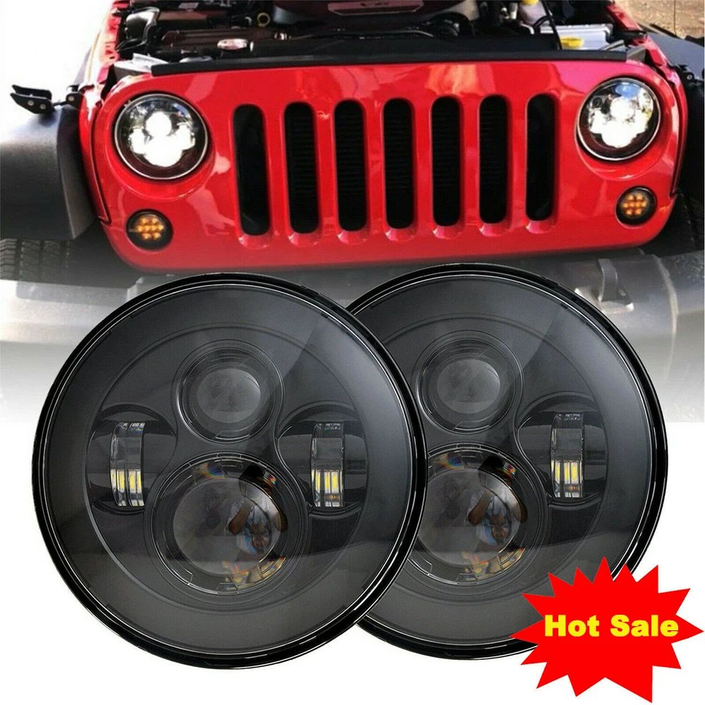 7 "круглые светодиодные фары Hi/Low Beam 6000K лампочки для Jeep JK TJ CJ 2004-19 с H4/H13 адаптер Жгут Авто налобный фонарь комплект