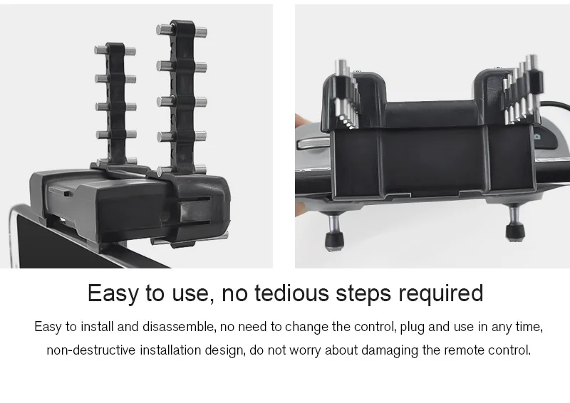 -Простота в использовании, не требуется никаких утомительных шагов, простота установки и разборки, нет необходимости менять управление, подключать и использовать в любое время, неразрушающая конструкция установки, не беспокойтесь о повреждении пульта дистанционного управления.