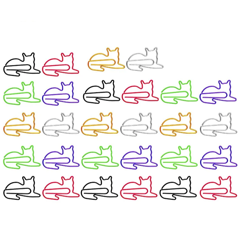 Забавный и восхитительный дизайн: Эти скрепки спроектированы как формы кошки, с различными цветами, такими как золото, серебро, розовый и так далее, милая форма и блестящие цвета могут легко привлечь ваше внимание, предоставьте вам удовольствие и удовольствие во время работы или учебы, а также хороший выбор подарков для любителей кошек и женщин