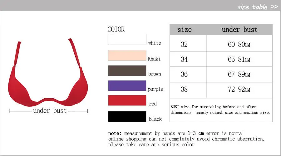 Женское нижнее белье пуш-ап с глубоким U-образным вырезом и открытой спиной, невидимый бюстгальтер с глубоким V-образным вырезом, добро пожаловать в наш магазин! Если вы не знаете, как выбрать, пожалуйста, пришлите нам свой размер груди и под размер груди. Мы порекомендуем вам подходящий размер.