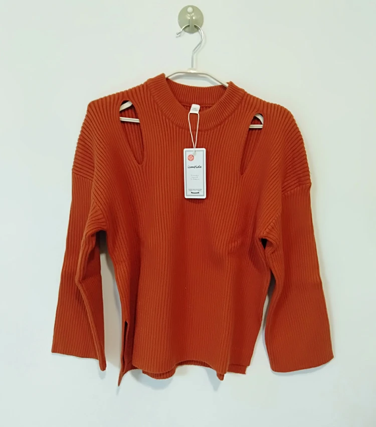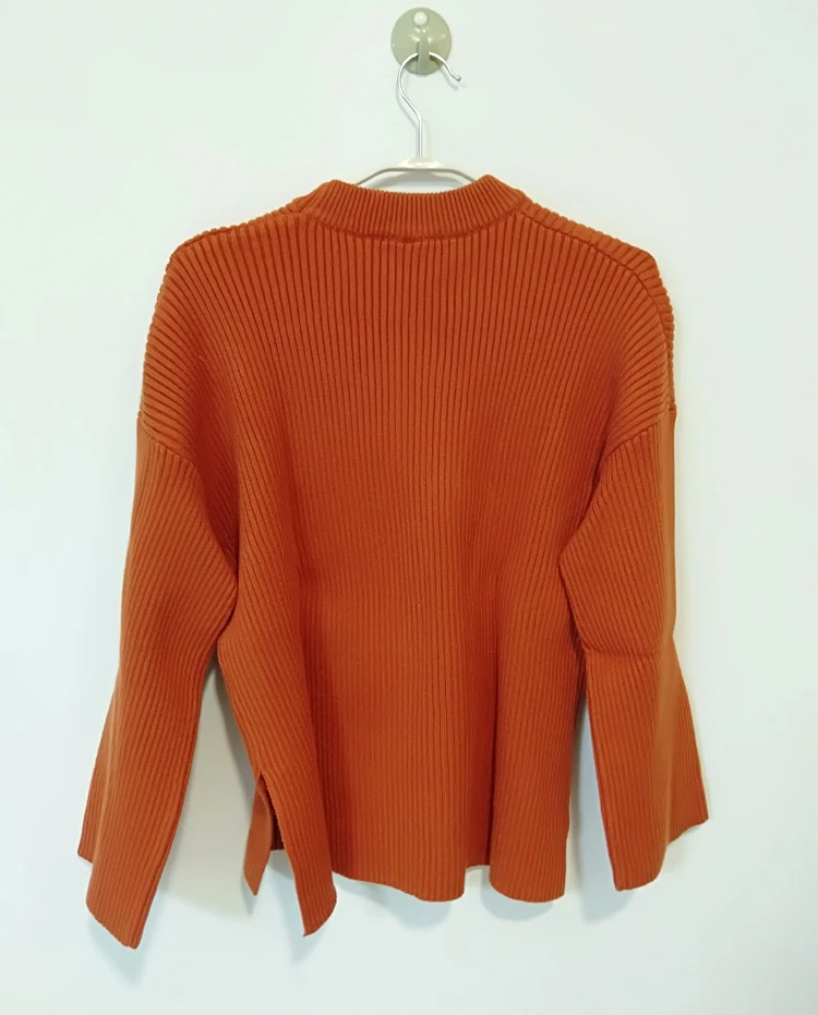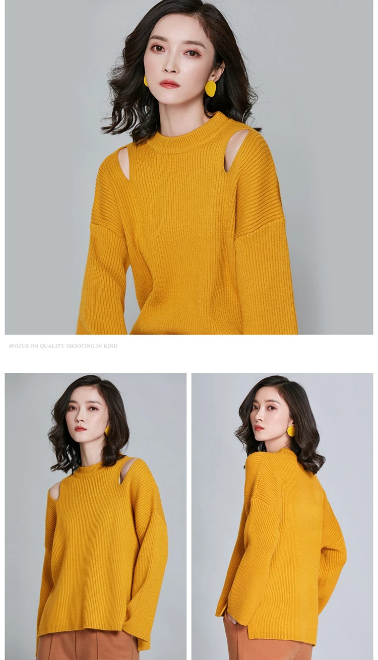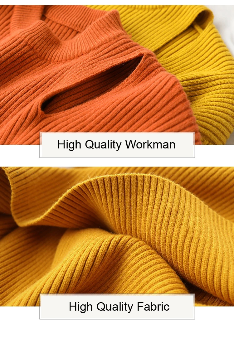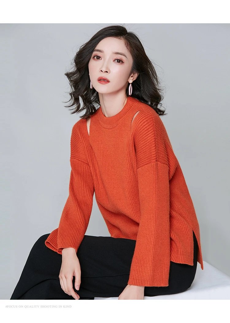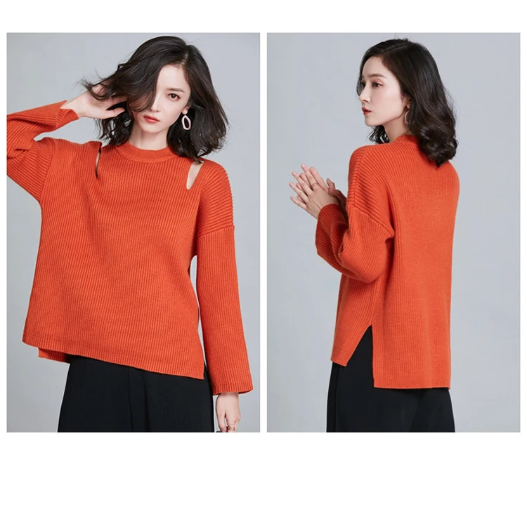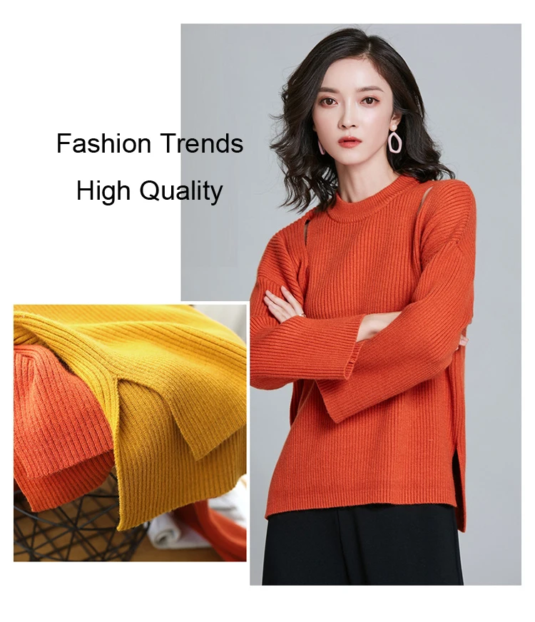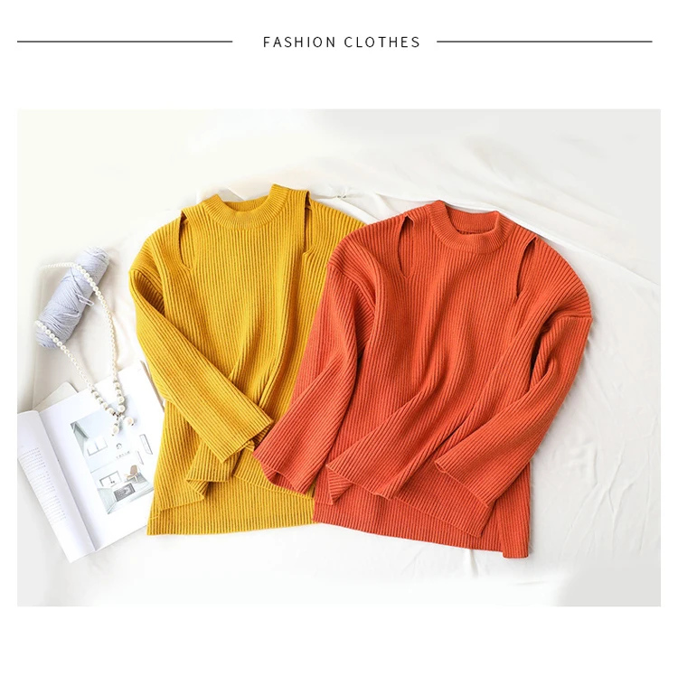 Новый Зимний золотой оранжевый однотонный вязаный пуловер с вырезами, женские свитера, 2020 толстый теплый свободный нестандартный шикарный свитер с разрезами по бокам
