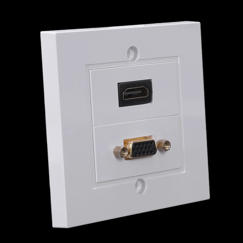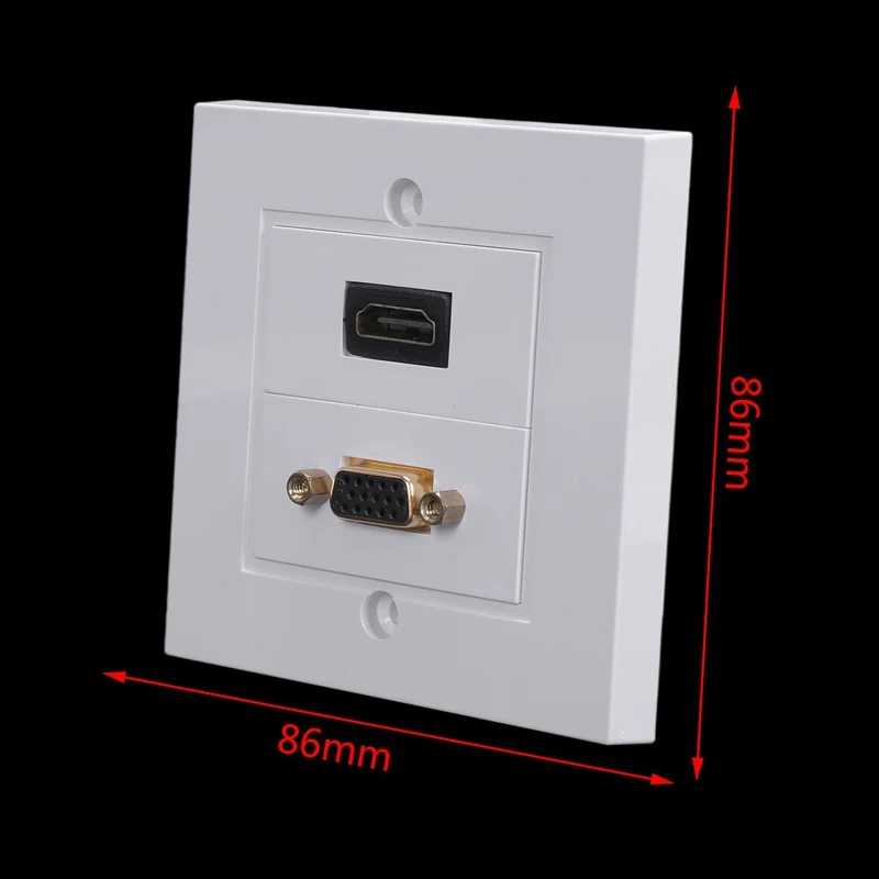 86x86 мм Настенная лицевая пластина 15 отверстий Vga розетка + Hdmi с удлиненный провод разъем медиа Ассорти панель Лицевая панель