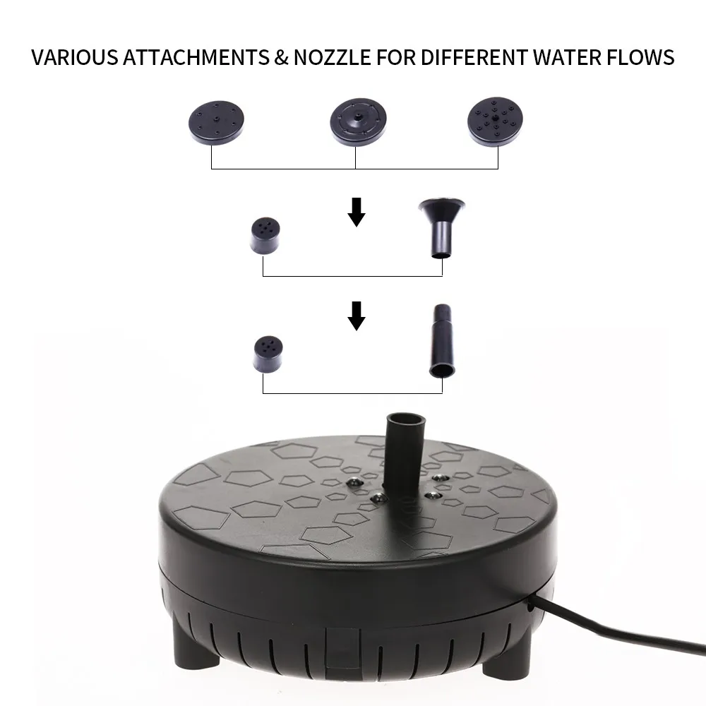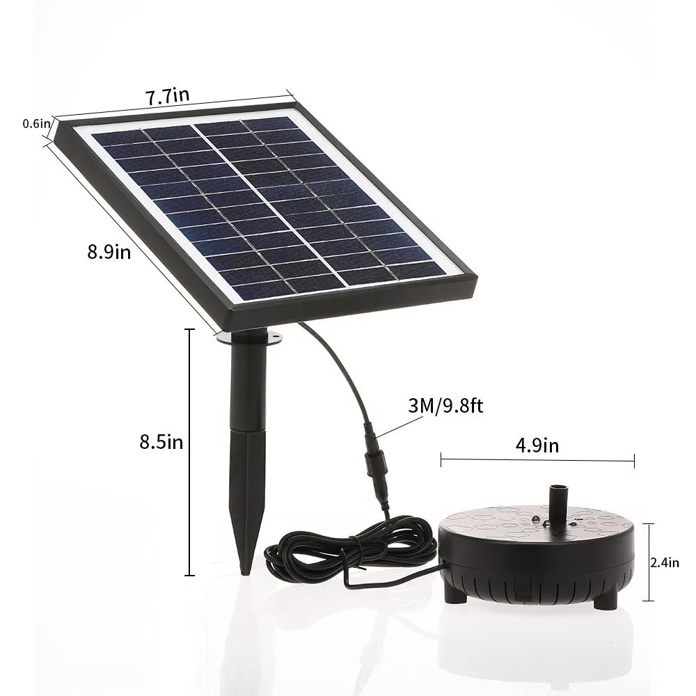 Описание: Этот продукт является солнечным декоративным фонтаном. Он состоит из высокоэффективной солнечной панели и нового бесщеточного насоса. Это быстрый запуск, эффективный и с сильной стабильностью. Кроме того, он не требует подключения, поэтому он не только прост в использовании, но и безопасен. С большой встроенной батареей, автоматически заряжается на солнечной батарее в дневное время и работает более 5 часов в ночное время, идет светодиодный светильник и наслаждайтесь фантастическим видом. Этот продукт подходит для ванны для птиц, аквариума, маленького пруда, украшения сада, циркуляции воды для кислорода и т. д. Особенности: Солнечный фонтанный насос birdbath с запасной батареей емкостью 2400 мАч, работает в течение 5 часов ночью после полной зарядки, поставляется с светодиодный светильник и дает вам фантастическую ночную сцену. Пульт дистанционного управления для 3-высокий уровень льется вода. Максимальная высота воды: 45 см (18 дюймов). Длина шнура: 9,8 футов. С фильтром, который может сделать насос поплавок на воде. Этот солнечный насос фонтана имеет более чем 20000 часов продолжительности жизни. И он имеет встроенный бесщеточный двигатель, который обеспечивает более длительный срок службы и более низкое энергопотребление. Поставляется с фитингами и 4 типами разбрызгивающих головок для различных водных потоков и высоты воды. Идеально подходит для ванны с птицами, аквариума, маленького пруда, украшения сада, циркуляции воды для кислорода. Этот солнечный насос работает автоматически, на солнечной энергии, нет дополнительной энергии, энергосбережение и экологически чистые. Начинает работать в течение 3 секунд после попадания достаточного солнечного света. Пожалуйста, убедитесь, что панель солнечных батарей не затенена и не пропускает фильтр. Технические характеристики: Солнечная панель: 12 В/5 Вт (закаленное стекло из поликремния) Класс водонепроницаемости: IP68 Бесщеточный насос вход: 6-12 В постоянного тока Батарея: 7,4 В/2400 мАч 2*18650 литиевая батарея Ежедневное рабочее время: более 5 часов в ночное время (полный аккумулятор) Максимальное количество потока: 170л/ч (47,6 ГПХ) Максимальная высота доставки: 24 ", обычная: 15-24" Минимальная глубина воды в фонтане должна быть 1 3/4" Длина шнура водяного насоса: 9,8 футов/3 м 5-светодиодный свет: 0,2 W,IP68, Φ5mm, 48LM, 6500K Посылка Размеры: 34*20*6 см/13,4*7,9*2,4 дюймов Вес: 1,402 кг Примечание: 1. Рабочая мощность солнечной панели будет зависеть от погоды, местоположения и т. д. 2. Не заставляйте насос работать без воды в течение длительного времени, или срок его службы будет сокращен. 3. Регулярно чистите насос, избегая всасывания фильтра, чтобы застревать. 4. Упаковка содержит мелкие детали, поэтому, пожалуйста, держите их подальше от детей и домашних животных. (ОПАСНОСТЬ УДУШЬЯ) Посылка список: 1 * Солнечная панель (встроенный аккумулятор) 1 * Бесщеточный насос с светодиодный 4 * носик для фонтана 2 * Насадка 1 * вставлен бар 1 * Дистанционное Управление 1 * Руководство пользователя (на английском языке)