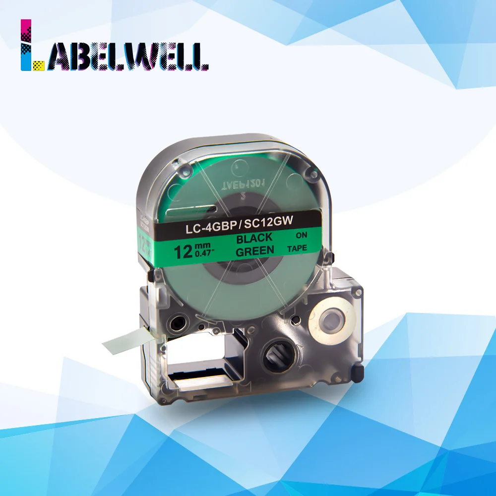 Labelwell черная на зеленой SC12GW этикеточная лента совместима с принтером этикеток Epson LW-300 LW-400 SR530C лентами для этикеток 12 мм * 8 м