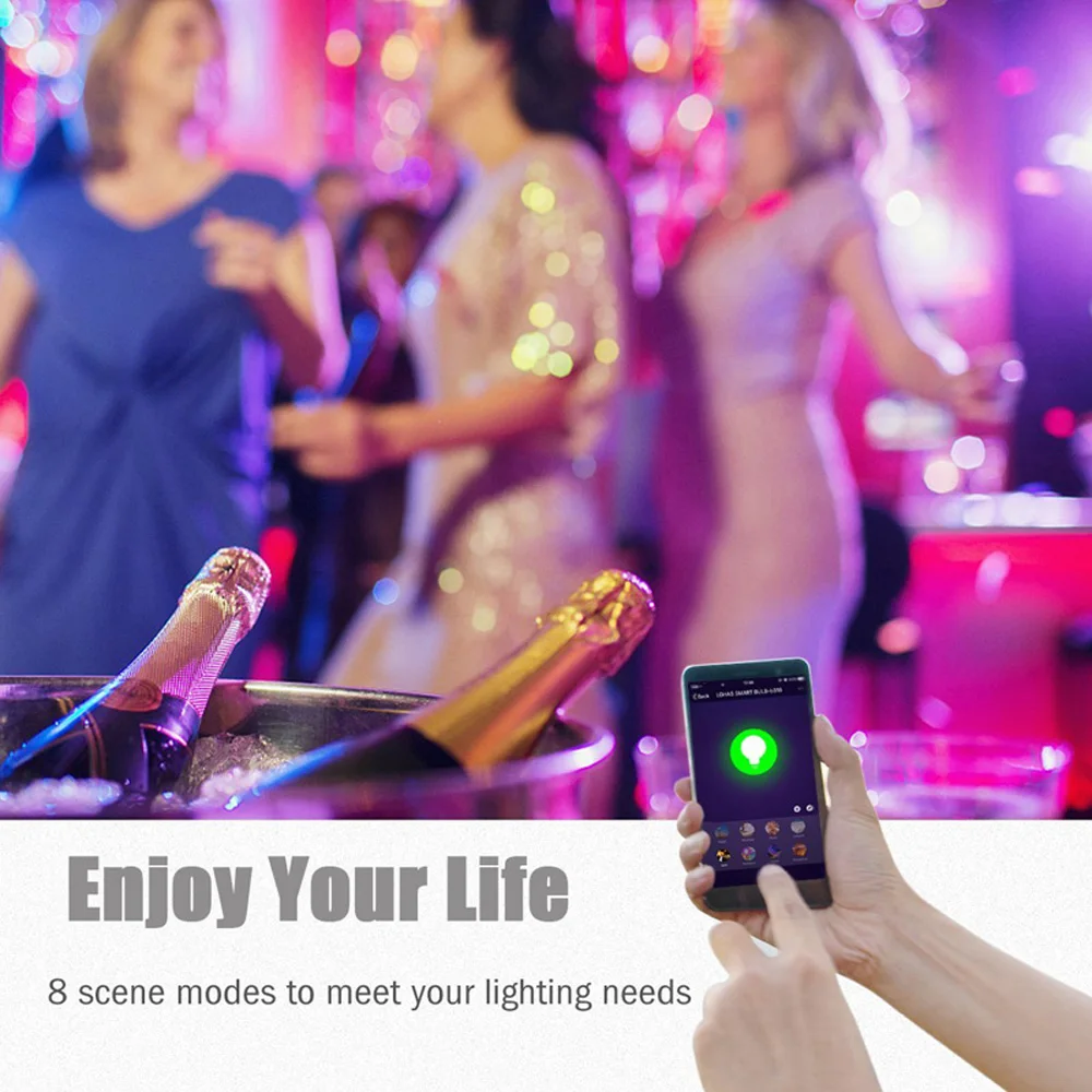 Можно отрегулировать 16 миллионов цветов. Используйте приложение «Smart Life», установленное на вашем смартфоне или планшете, чтобы изменить желаемый цвет на основе круга RGB, показанного в приложении. А яркость цвета можно менять с темного на яркий.