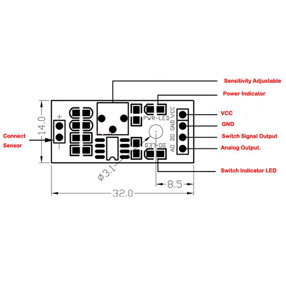 3.Чувствительность регулируется. (Показан в синем цифровом потенциометре)
