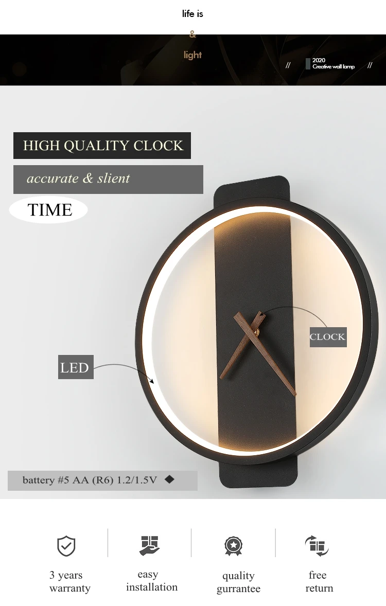 Бренд: Advance светильник Store Модель: настенный светильник нового дизайна и часы времени Материал: железо и акрил Отделка: кованое железо/лак Светильник источник света: светодиодный (Квадрат) размер и мощность W30 * L35 * H4cm 24W (Круглый) размер и мощность: W30 * L35 * H4cm 18W Часы питания: Аккумулятор #5 AA (R6) 1,2/1,5 V (не прилагаются) Гарантия: 3 года Цвета: черный или медный Цветовая температура: теплый whtie 2700-3000K Применение: спальня; Столовая; Читальная комната; Гостиная Важное примечание: 1. Часы работают с батареей 1 AA размера. 2. Лампа работает с общим электропитанием, пожалуйста, проверьте местное входное напряжение и выберите подходящий: AC110 или AC220 3. Мы не поставляем батарею.