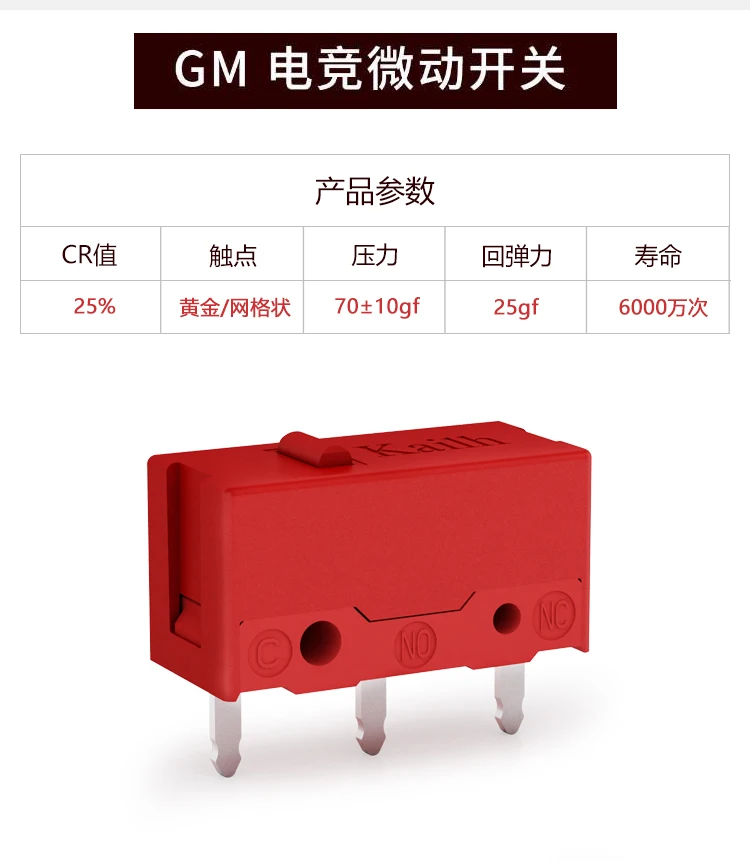 Игровая мышь Kailh GM switch 60M life, микропереключатель, кнопка, красная точка, подходит для Logitech G304 305 Sensei TEN