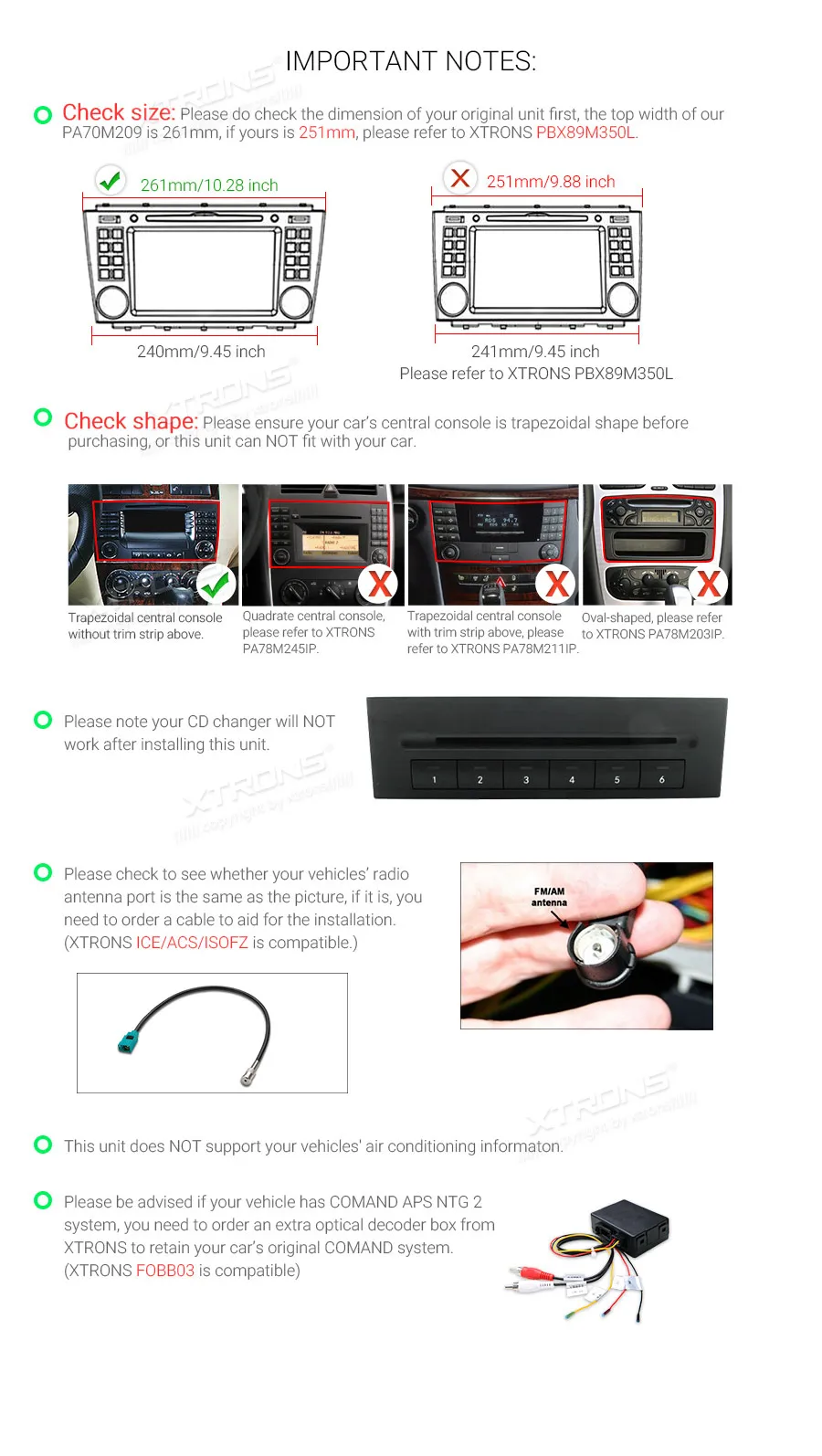 Для Mercedes-Benz CLK-Class W209 (2005-2006) Для c-класса W203 (C180 / C200 / C220 / C230 / C240 / C250 / C270 / C280 / C300 / C320 / C350 / 32 AMG) (2004-2007) (Пожалуйста, проверьте размеры заранее) Для G-Class W463 (G350 / G500 / G55) (2006-2008) Лицевая панель: 260/240x120 мм