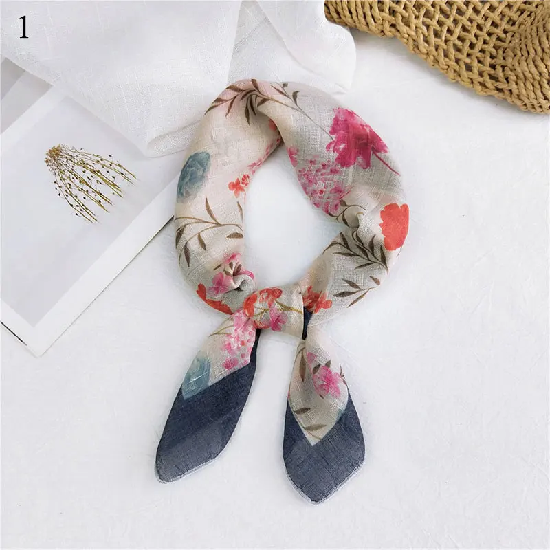 Женский маленький платок 58*58 см, бандана, хлопковая льняная Косынка, повязка для волос, квадратный платок, цветочный принт, головной платок в стиле хип-хоп