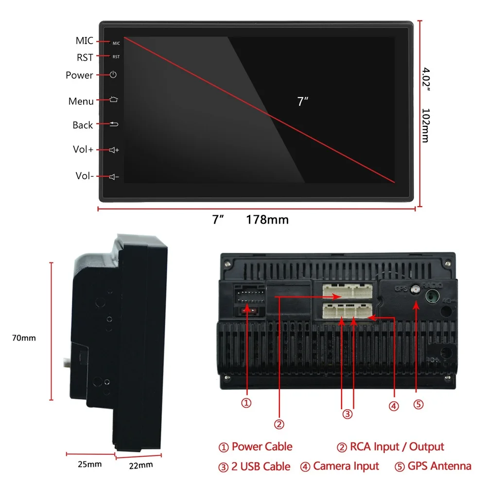 Характеристики: Din: двойной Din Размер дисплея: 7" Выходная мощность: 4X45 Вт Максимальная Внешняя память: 128G Операционная система: Android Формат цифровых медиа: Mp3 Формат цифровых медиа: Mp4 Формат цифровых медиа: WMA Формат цифровых медиа: JPEG RAM: 1G Тип материала: алюминиевый сплав и абс + емкостный сенсорный экран Слот TF/Micro SD: 0 Разрешение: 1024*600 Вес изделия: 1100 г Специальные Особенности: Встроенный GPS Особенности: радио-тюнер Особенности: сенсорный экран Особенности: зарядное устройство Особенности: fm-передатчик Особенности: Bluetooth Особенности: мобильный телефон Особая особенность: Встроенный динамик/микрофон Особая особенность: функция Wifi Особая особенность: поддержка управления рулевым колесом Для марок автомобилей/Модель: Универсальная Напряжение: 12 В Размер изделия: 178*102 мм ПЗУ: 16 г Название модели: 7-дюймовое Универсальное автомобильное радио на Android Интерфейс: Двойной вход USB адаптера Операционная система: Android 9,1 GO Для автомобиля Тип/модель: оригинальный универсальный автомобильный аудио Android 2 din Процессор: A7 1,3 GHz x 4 2 din: для Volkswagen Nissan Kia toyata CR-V Название модели: Android 2 Din Автомобильный Радио мультимедийный плеер Интерфейс: универсальный кабель Volkswagen Nissan toyata RAM: 1G ПЗУ: 16 г Универсальный автомобиль: для 2 din автомобиля android Для режима: Автомобильный Радио двойной Din мультимедийный плеер Видеорегистратор: Поддержка Резервная камера: Поддержка Автомобильный радиоинтерфейс: два usb-интерфейса Подходящий тип транспортного средства: Для VW Toyota Honda Hyundai Nissan Kia Unviersal 2 din android Особенности автомобильного радио: Автомобильный dvd-плеер универсальный автомобиль