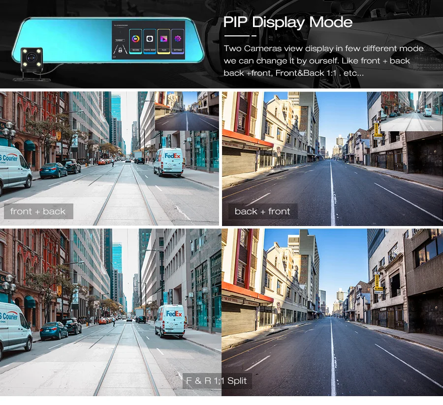 Поддержка 1:1 и дисплея PIP: это означает, что передние и задние как 1:1, или передние и внутренние как 1:1. Он также поддерживает дисплей PIP, Вы найдете небольшой дисплей в правом верхнем углу.