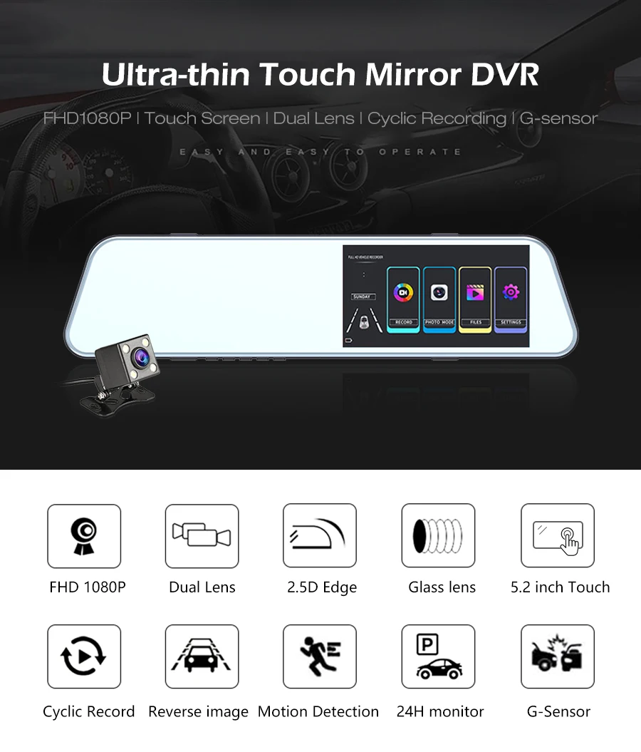 Когда кто-то рядом с вашим автомобилем или автомобилем начинает двигаться, автоматически включается и начинает запись при обнаружении любого удара или столкновения, устройство автоматически записывает в течение нескольких секунд, убедитесь, что 24H защита от парковки. Внимание: он должен быть соединен леской.